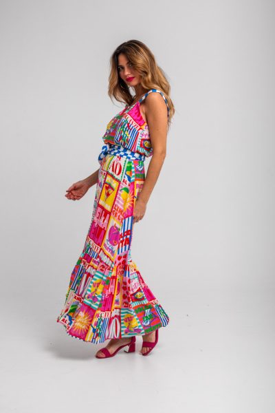 Lolina • Dolce Far Niente Long Strappy Dress • Italian collage print