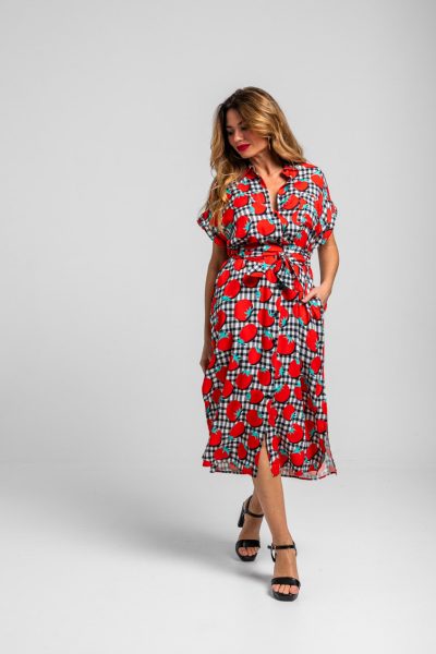 Lolina • Pomodori Sleeveless Shirtdress • White Red Black