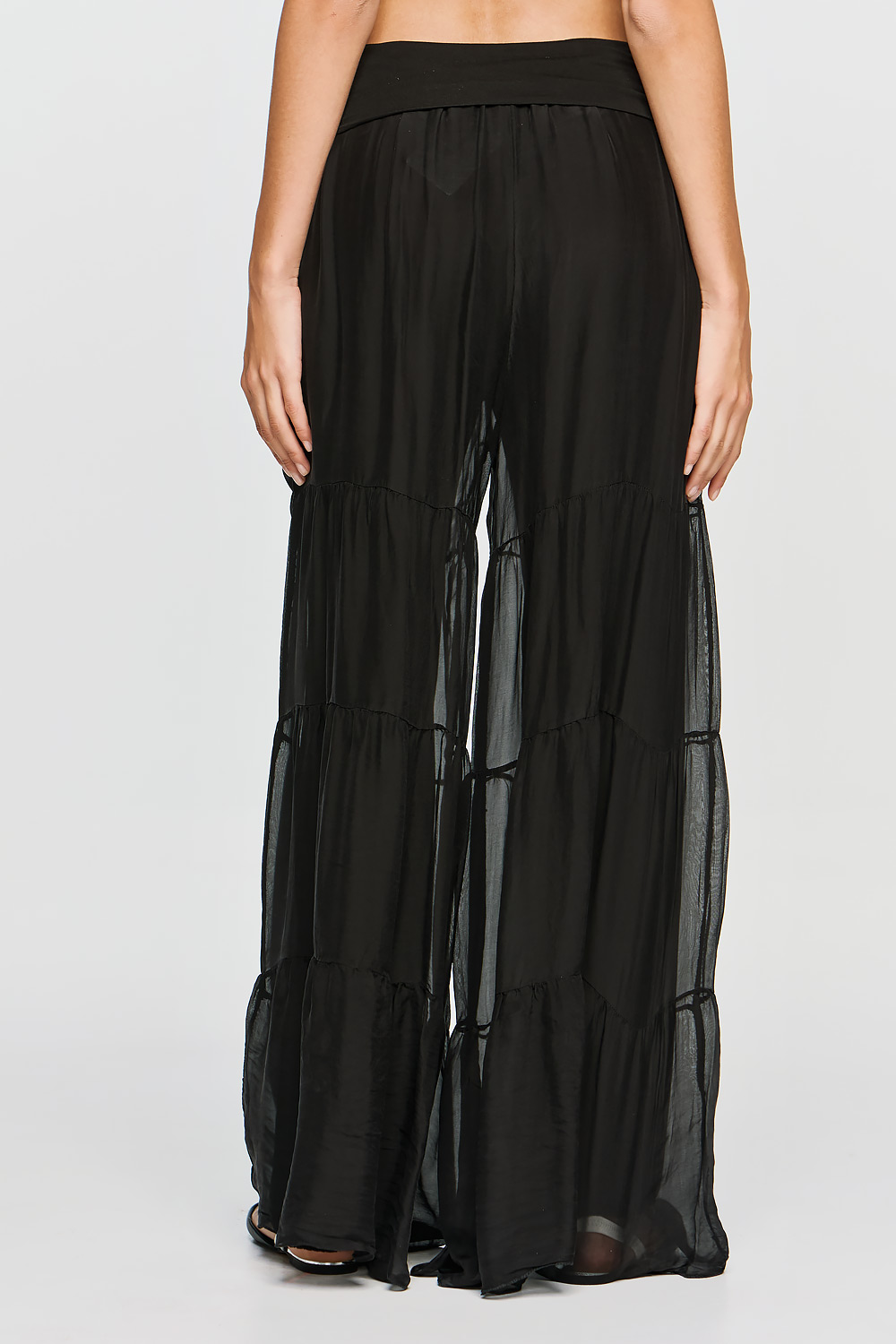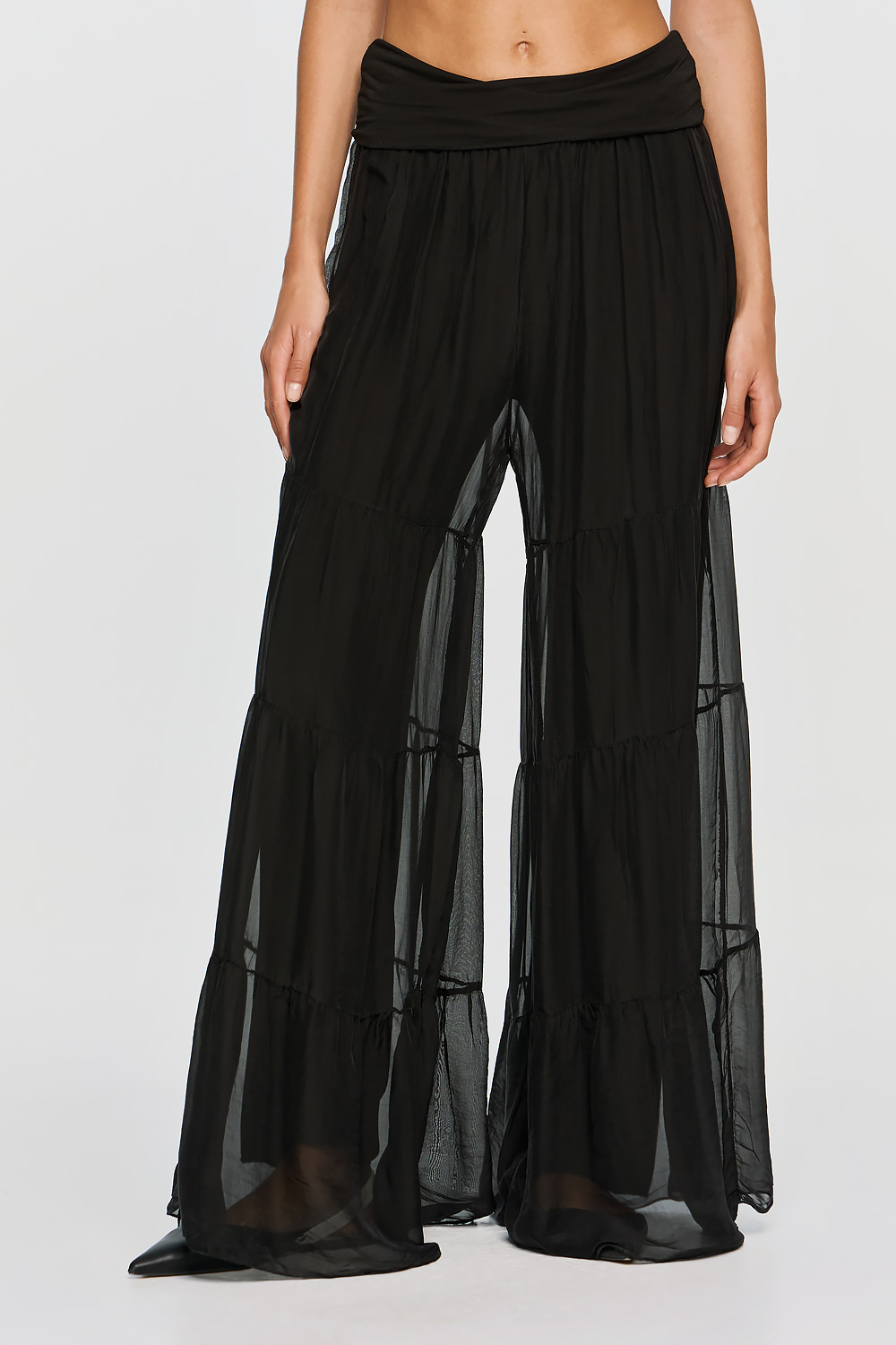 The Antigone pants redefine effortless elegance with a perfect balance of comfort and feminine movement. Crafted with a soft viscose waistband for enhanced comfort and a fluid fit, they gently embrace the waist without restricting it. The lightweight silk exterior drapes beautifully, while delicate ruffles running along the length of the pants add graceful motion and a subtly romantic touch.