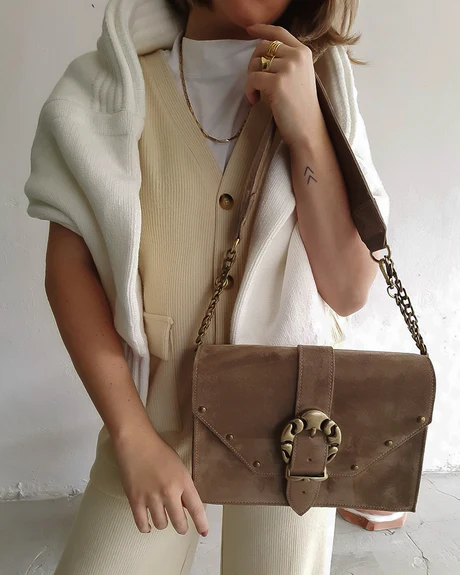 Bonendis • Briana Suede Leather Shoulder Bag • Mocca
