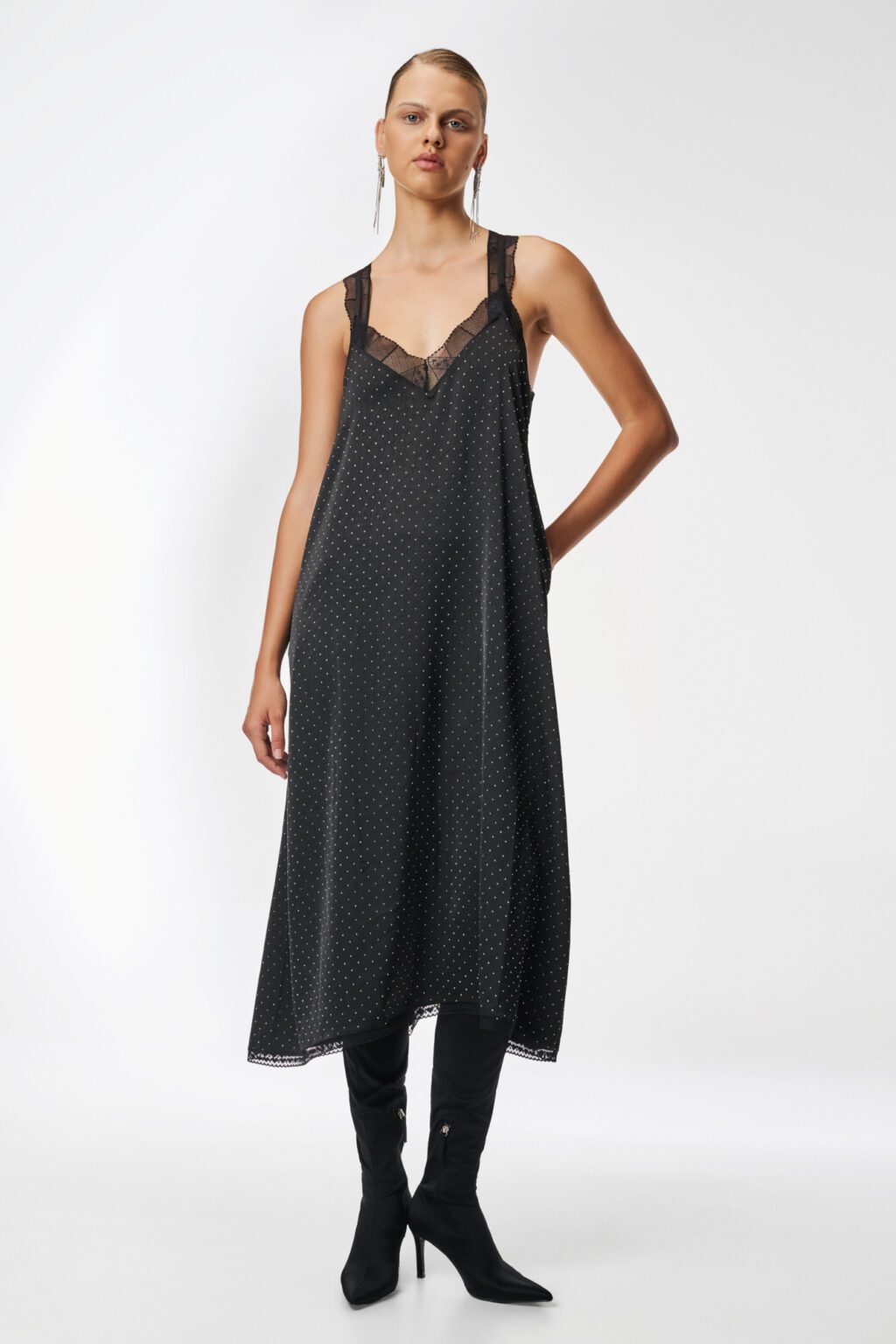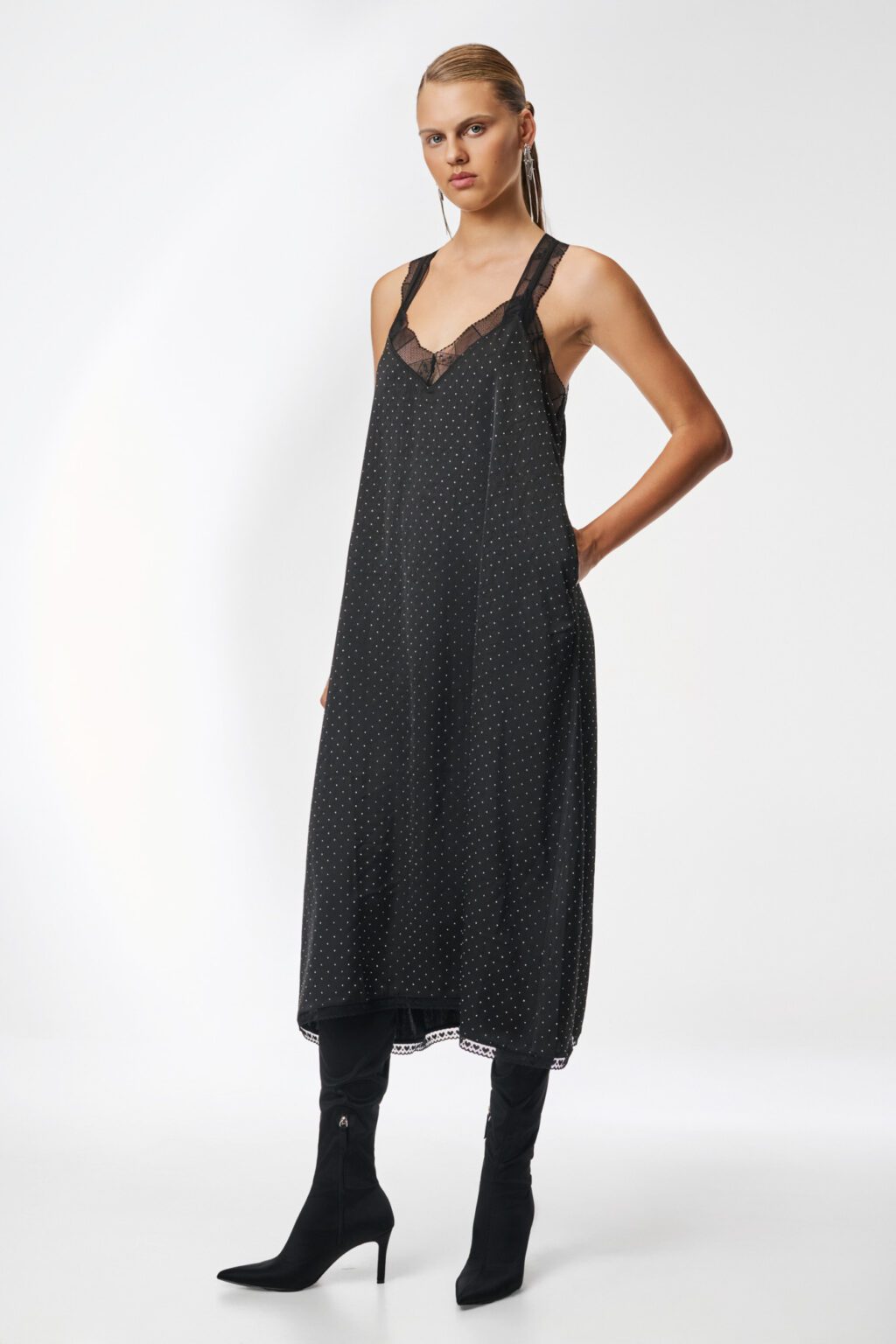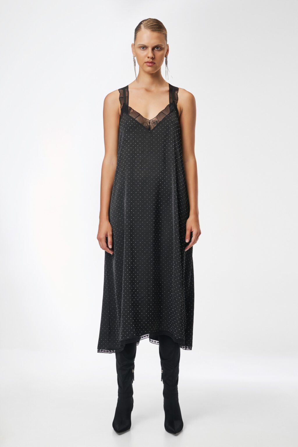 – Γυναικείο μαύρο μακρύ slip φόρεμα με στρας από την Cloud 9 By L