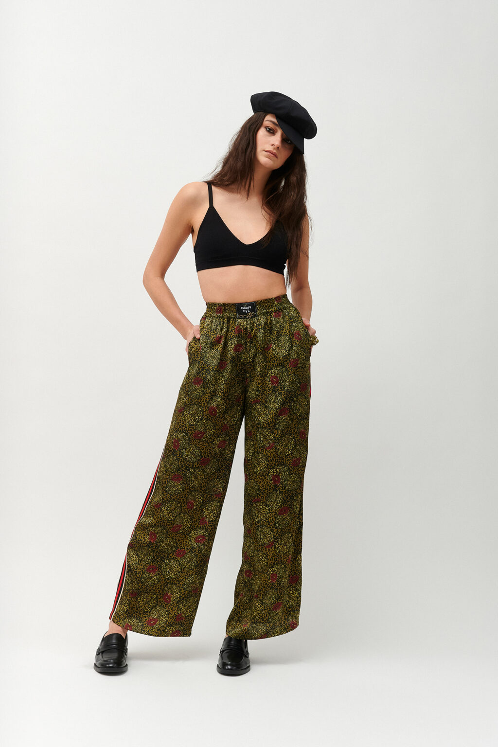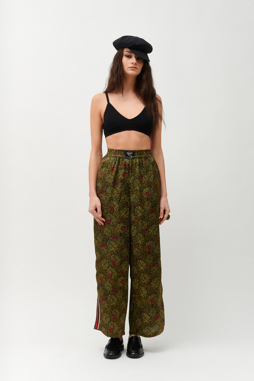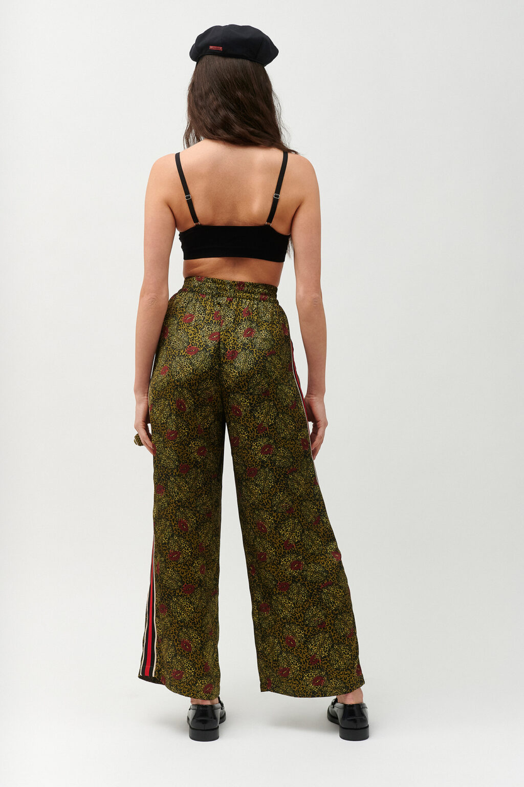 Απόκτησε effortless στυλ με αυτό το statement παντελόνι σε wide-leg γραμμή, που συνδυάζει άνεση με τολμηρό fashion χαρακτήρα. Με τον ίδιο εντυπωσιακό συνδυασμό από animal-inspired μοτίβα και παιχνιδιάρικα σχέδια με χείλη, προσθέτει μοναδική προσωπικότητα στην καθημερινή σου γκαρνταρόμπα.