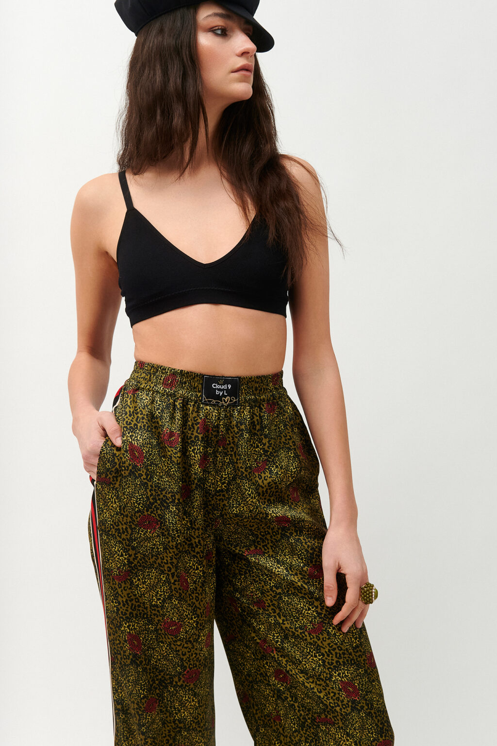 – Παντελόνι σε πράσινη λαδί απόχρωση με animal print από την Cloud 9 By L
