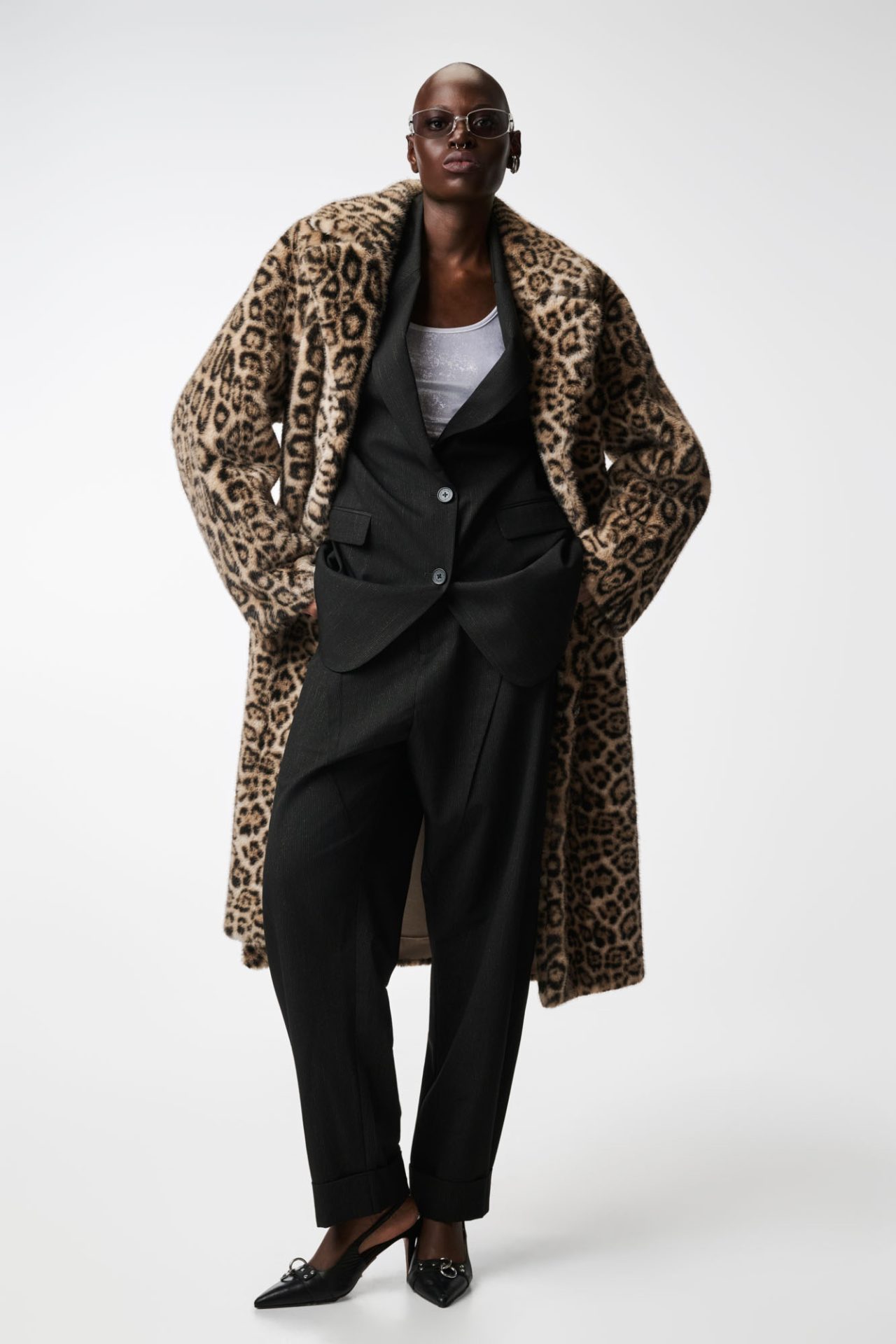 Με καλοραμμένη και κομψή γραμμή, αυτό είναι το παλτό Mars. Κομμένο σε κλασική μακριά γραμμή, μονόπετη σιλουέτα με βουρτσισμένο ζακάρ animal print σε όλη την επιφάνεια με κάθε λεπτομέρεια. Σχεδιασμένο σε χαλαρή εφαρμογή με υπερβολικό γιακά – είναι το τέλειο πανωφόρι για τους πιο δροσερούς μήνες.