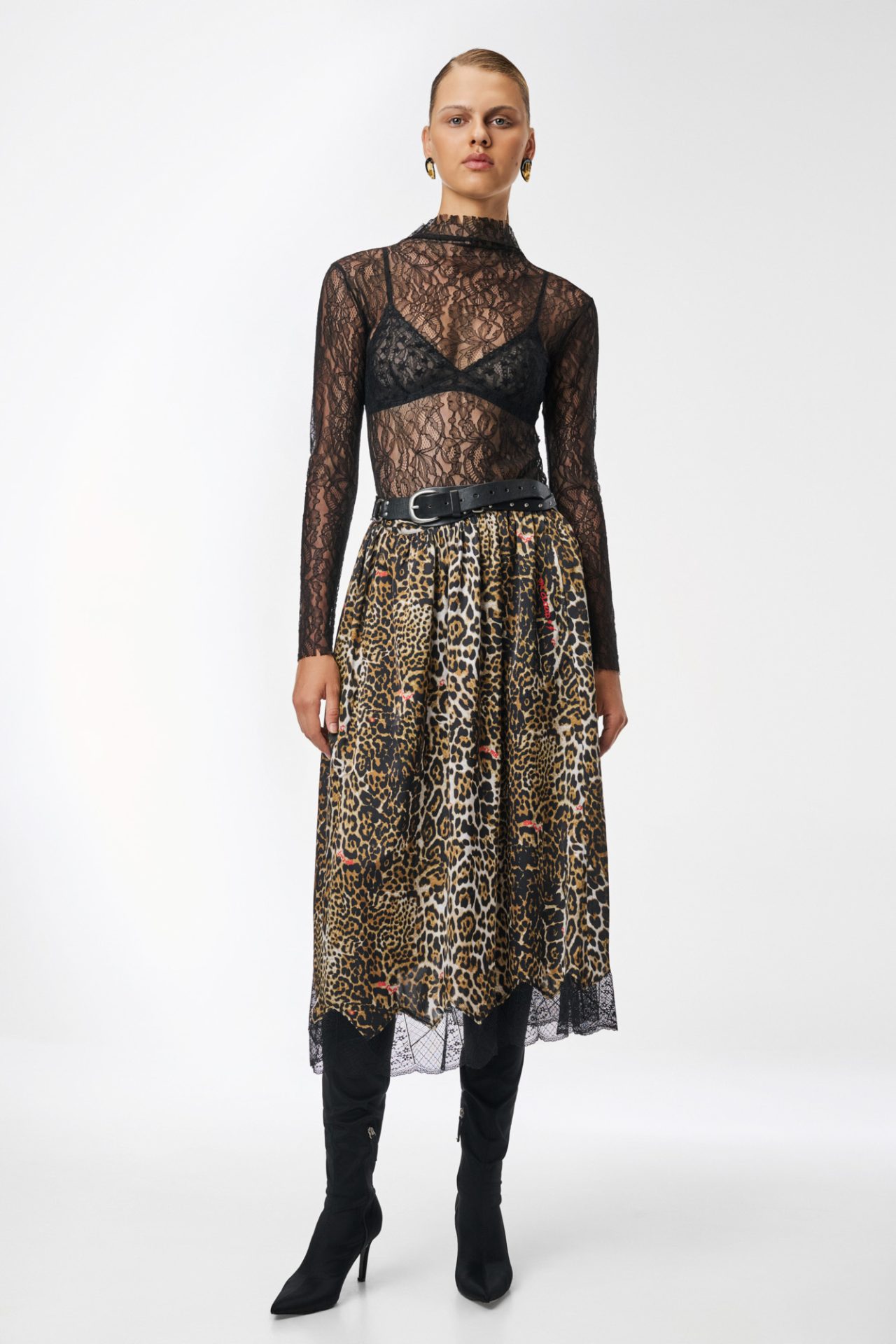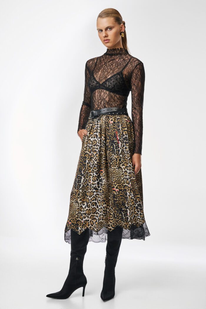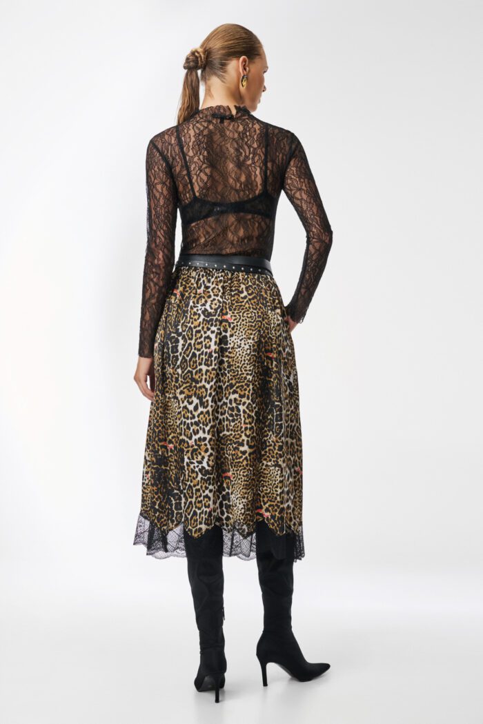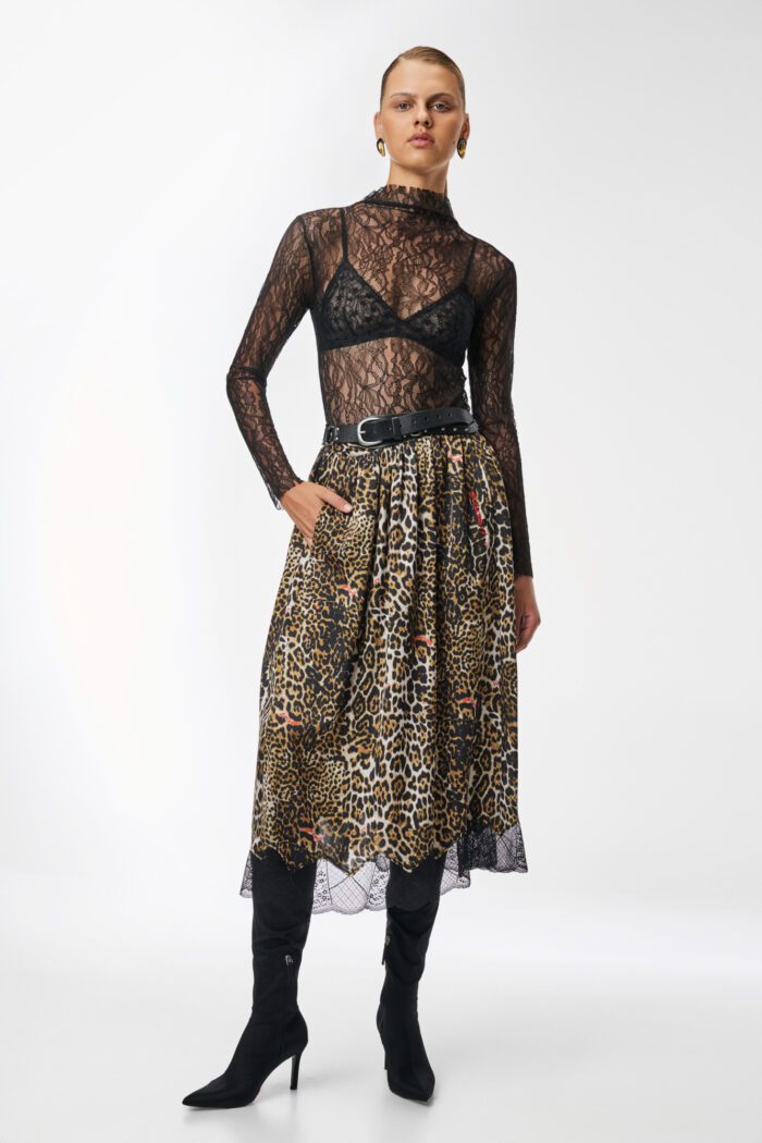Τόσο cool & chic με μια αβίαστη πινελιά κομψότητας, αυτή η εκπληκτική φούστα είναι σίγουρο ότι θα τραβήξει τα βλέμματα κάθε φορά που θα τη φοράτε. Με το αέρινο, εξαιρετικά απαλό υλικό της, το χαρακτηριστικό λεοπάρ τύπωμα C9 και το δαντελένιο τελείωμα, υπόσχεται μια ανάλαφρη, cool εμφάνιση. Αυτή η super chic & εντυπωσιακή φούστα διαθέτει ελαστική μέση και λεπτομέρειες με δαντέλα στον ίδιο τόνο.