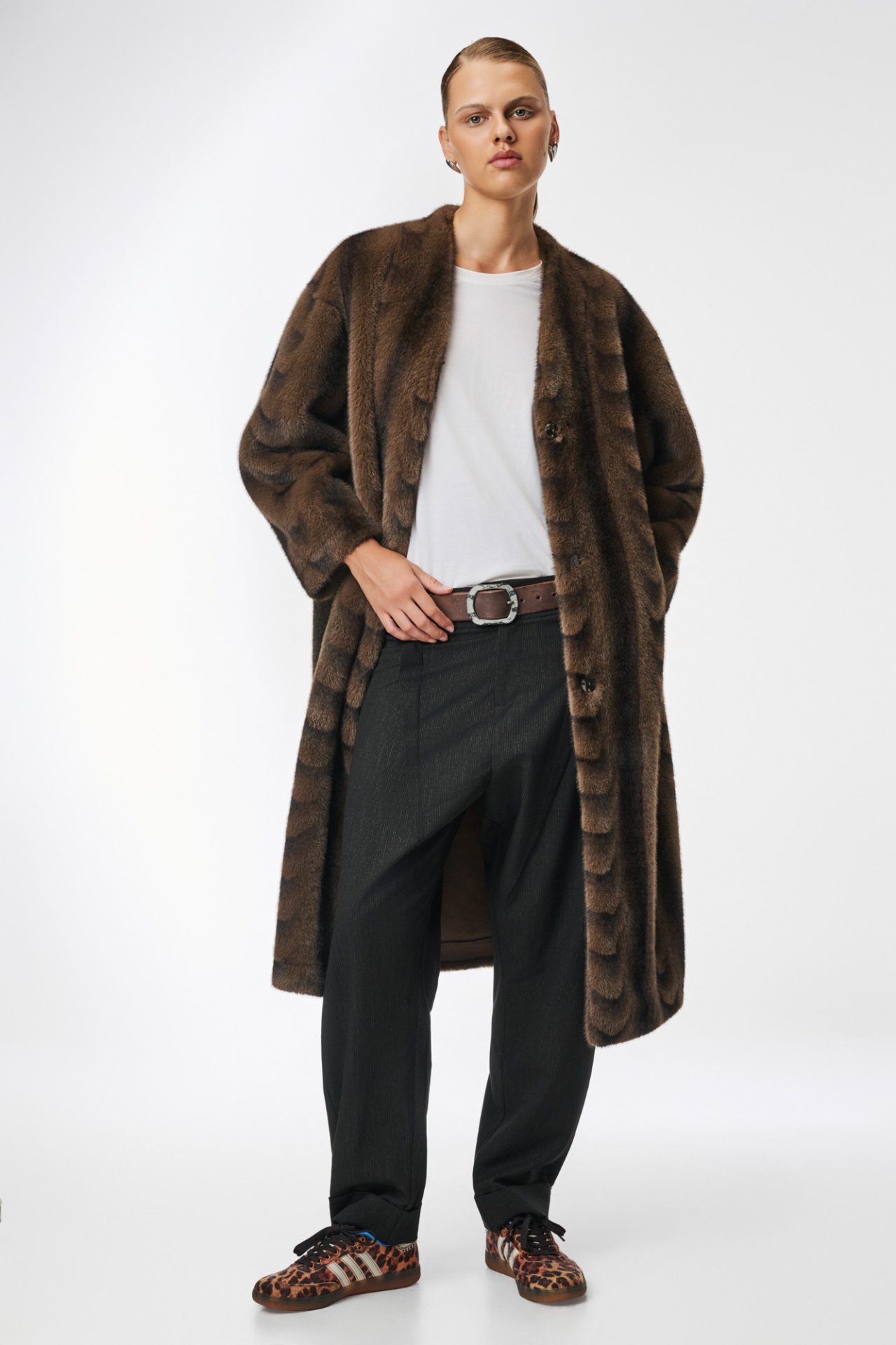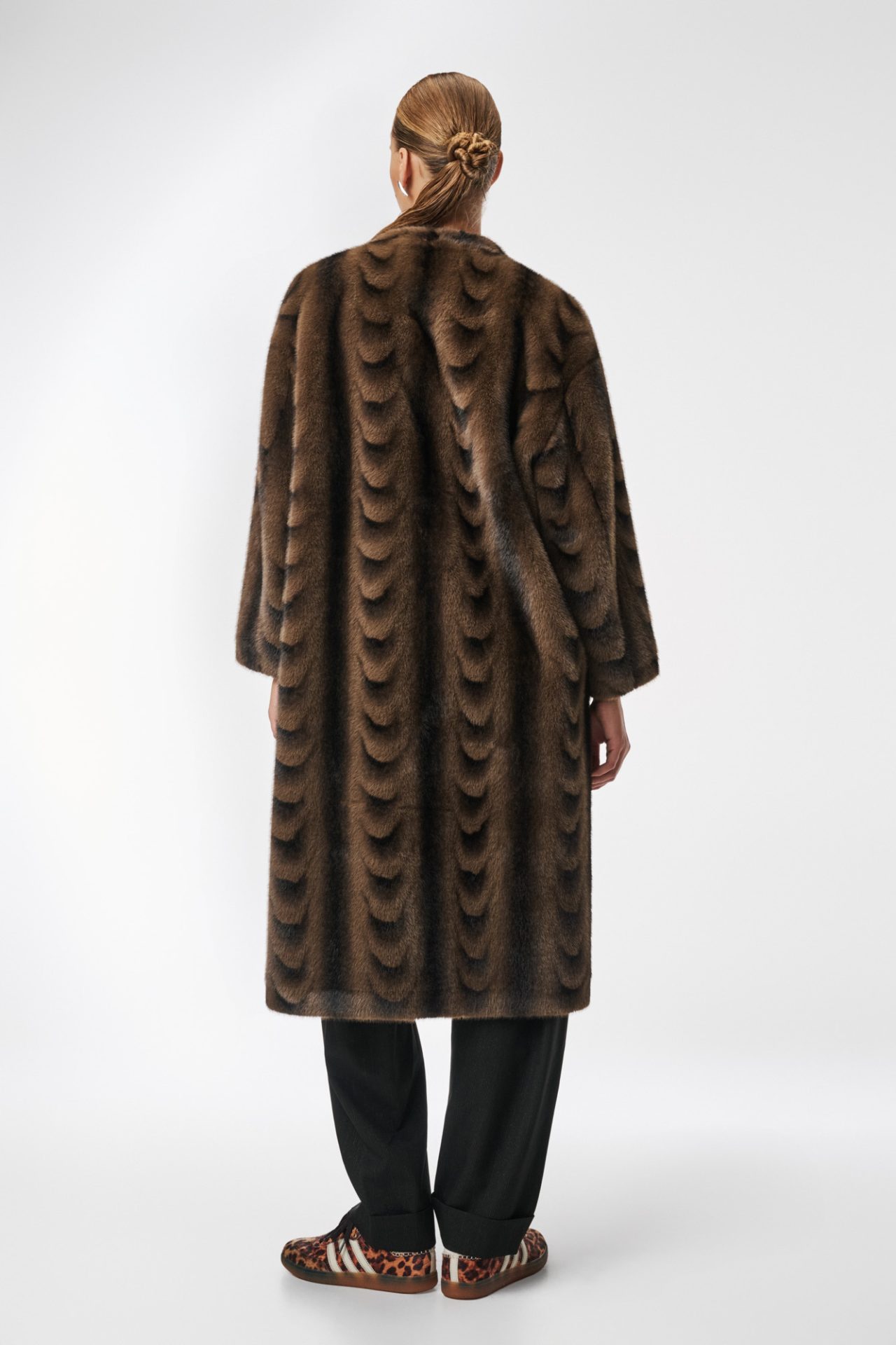 Προσθέστε την τέλεια πολυτελή πινελιά σε κάθε σας εμφάνιση με αυτό το εκπληκτικό παλτό από συνθετική γούνα, που διαθέτει μια κλασική μακριά σιλουέτα και καθορισμένες ραφές σε όλη την έκταση, για να δίνει την αίσθηση της πραγματικής γούνας.