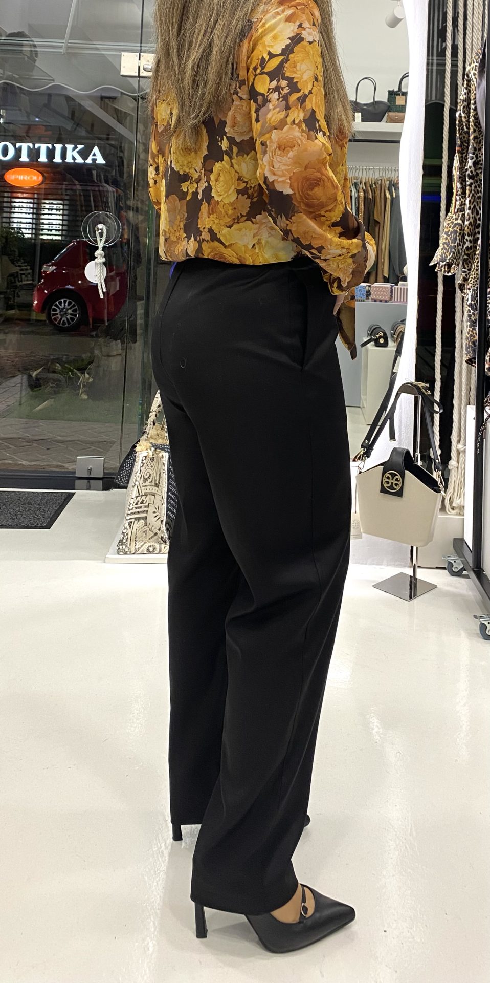 Ιταλική φινέτσα και θηλυκές γραμμές από τη Le Streghe. Aνετο παντελόνι για όλες τις ώρες, πολύ μαλακό, υπέροχη εφαρμογή και εξαιρετική ποιότητα. Τσέπες και ελαστική μέση, κορδόνι.