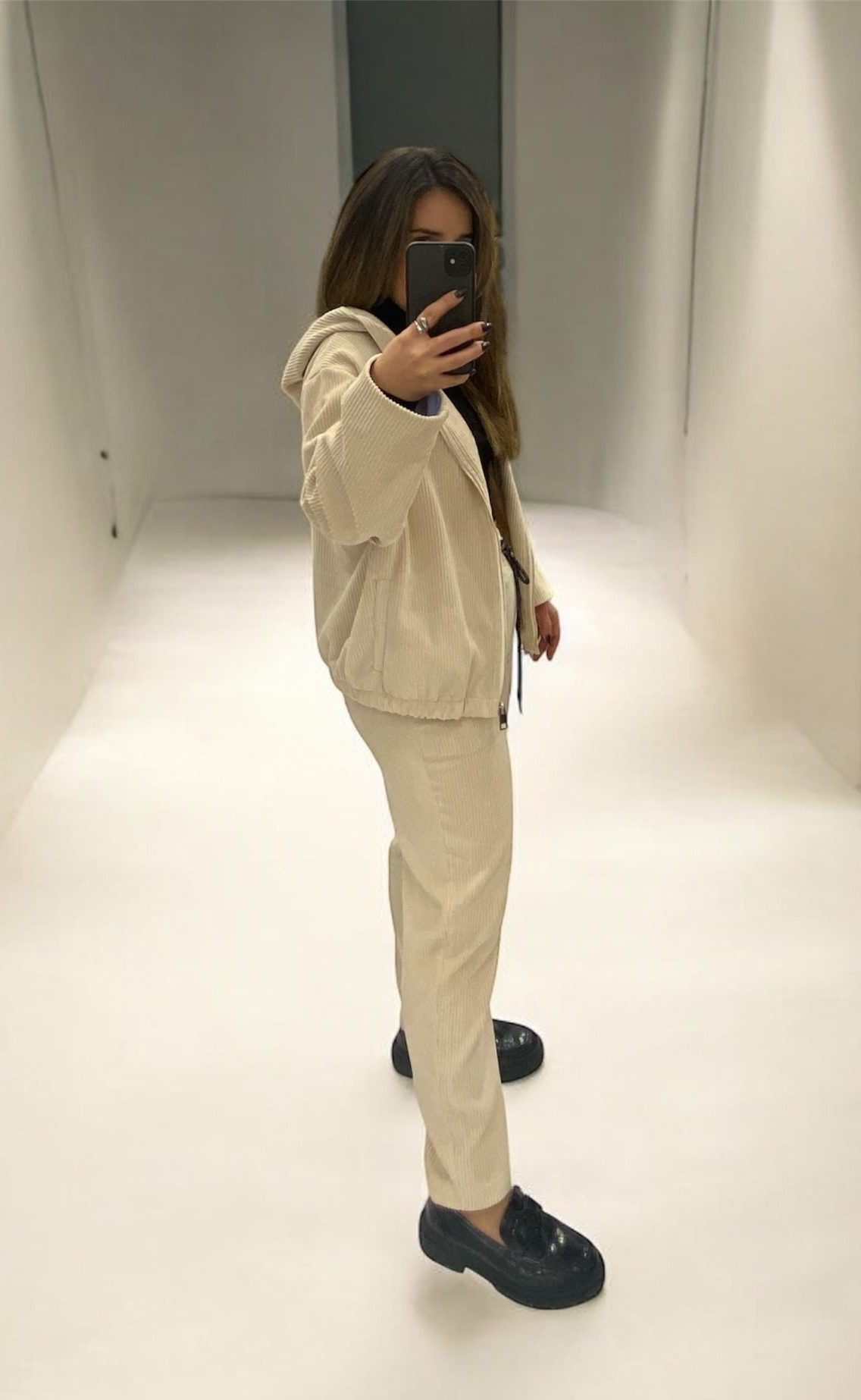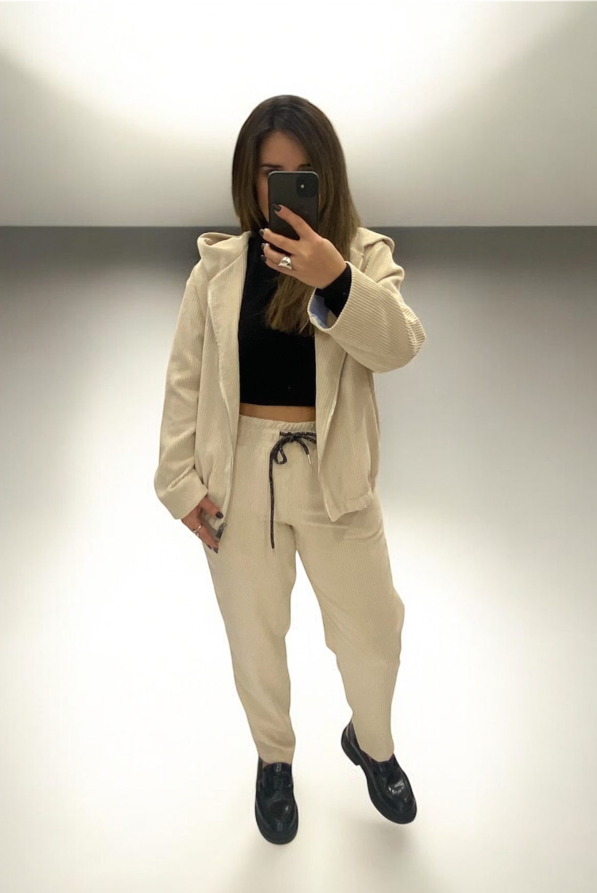 Le Streghe • Hooded Corduroy Velvet Jacket • Latte Beige