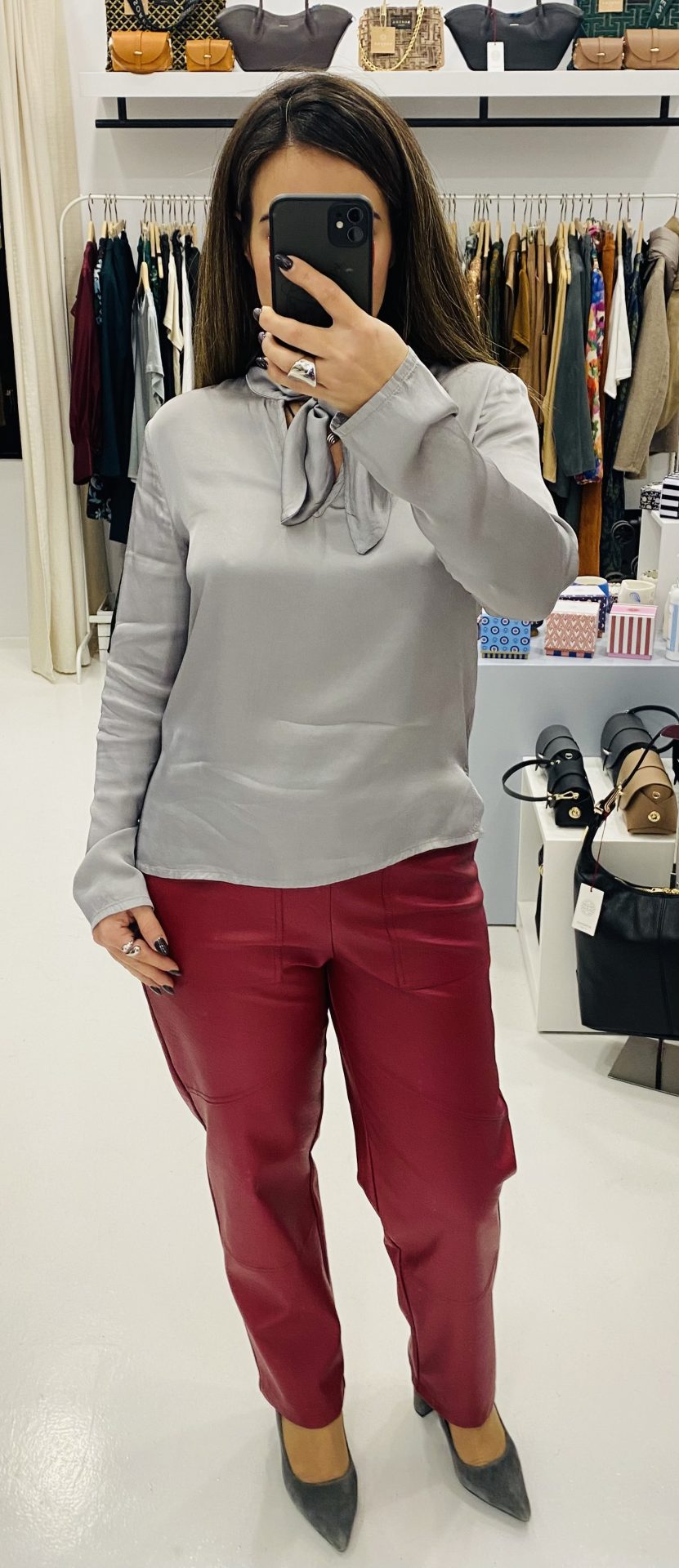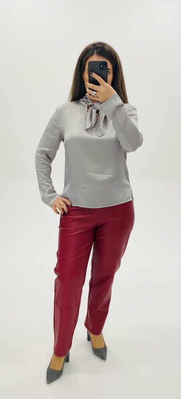 Ιταλική φινέτσα και θηλυκές γραμμές από τη Le Streghe. Μπλούζα-πουκαμίσα με ενσωματωμένο φουλάρι στο γιακά σε κανονική εφαρμογή και σατινέ υφή, πολύ μαλακό ύφασμα για πρωινά και βραδινά outfits.