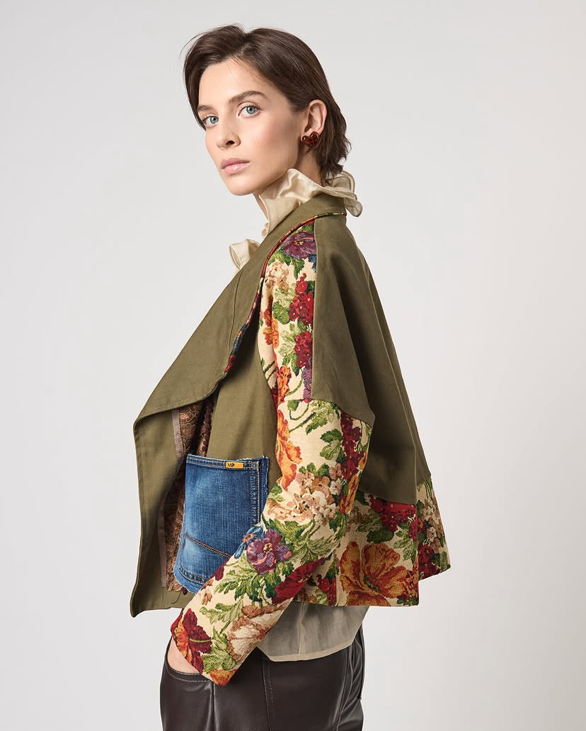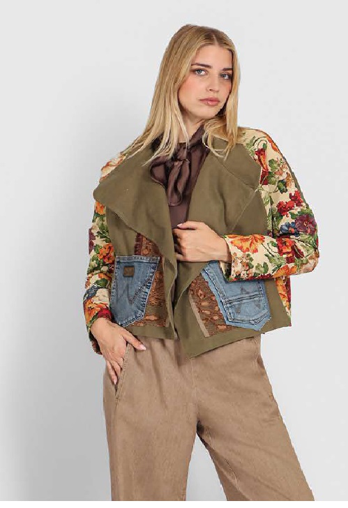 Ιταλική φινέτσα και θηλυκές γραμμές από τη Le Streghe. Oversized jacket με εντυπωσιακά χρώματα και κεντητές λεπτομέρειες