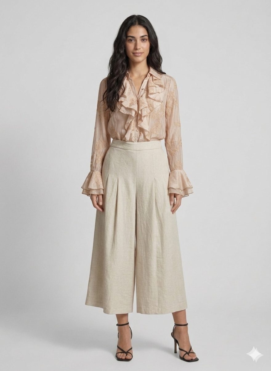Le Streghe • Structured Wide-leg Trousers • Beige