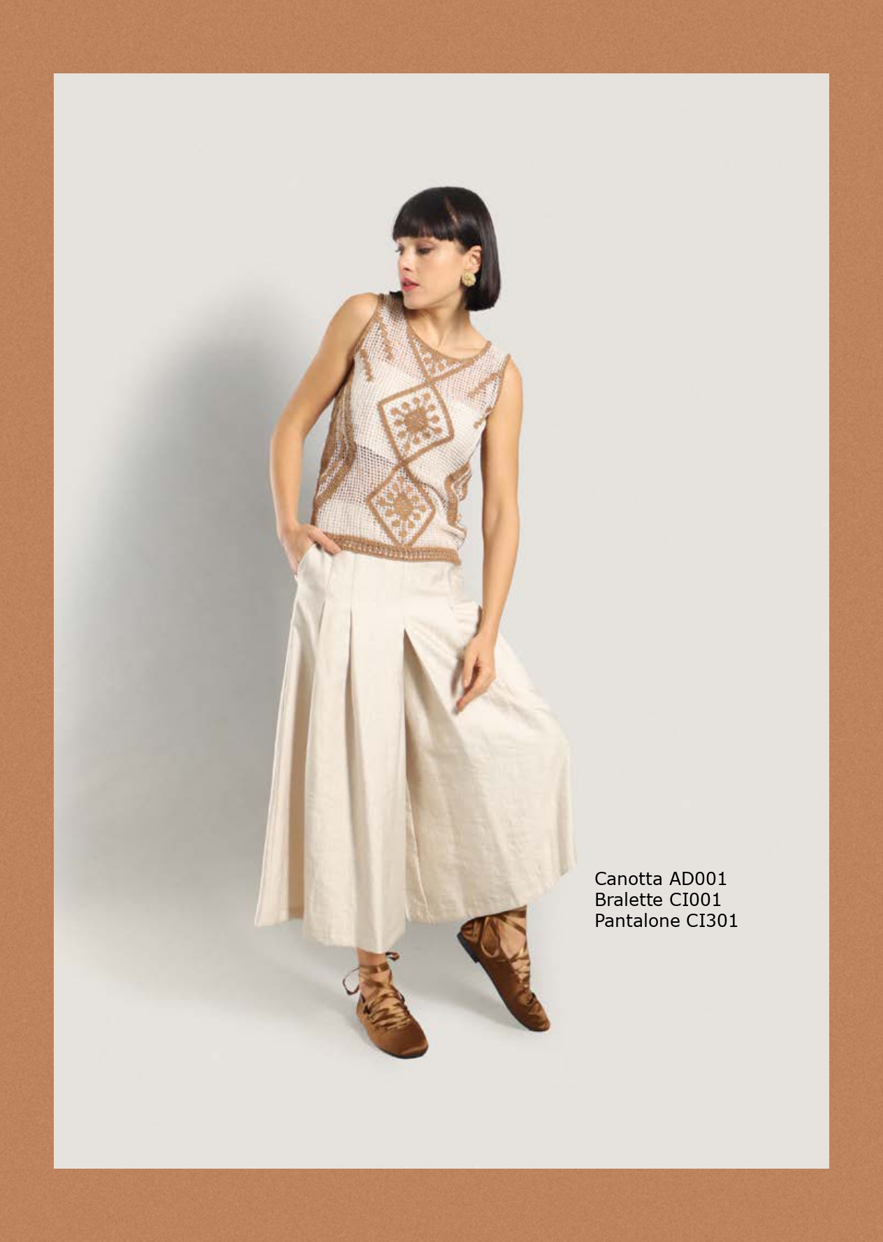 Ιταλική φινέτσα και θηλυκές γραμμές από τη Le Streghe. Αέρινη και κομψή jupe culotte αγκαλιάζει τη μέση και τους γοφούς, χαμηλές πιέτες και τσέπες. Διακριτικό sophisticated fluid ύφασμα, με φίνα υφή και ήπια περλέ λάμψη. Συνδυάστε την με τo ασορτί μπούστο της, είτε σκέτο, είτε με ένα σακάκι, είτε με την εντυπωσιακή camicia rosegold της συλλογής για πιο εντυπωσιακό και elegant outfit.