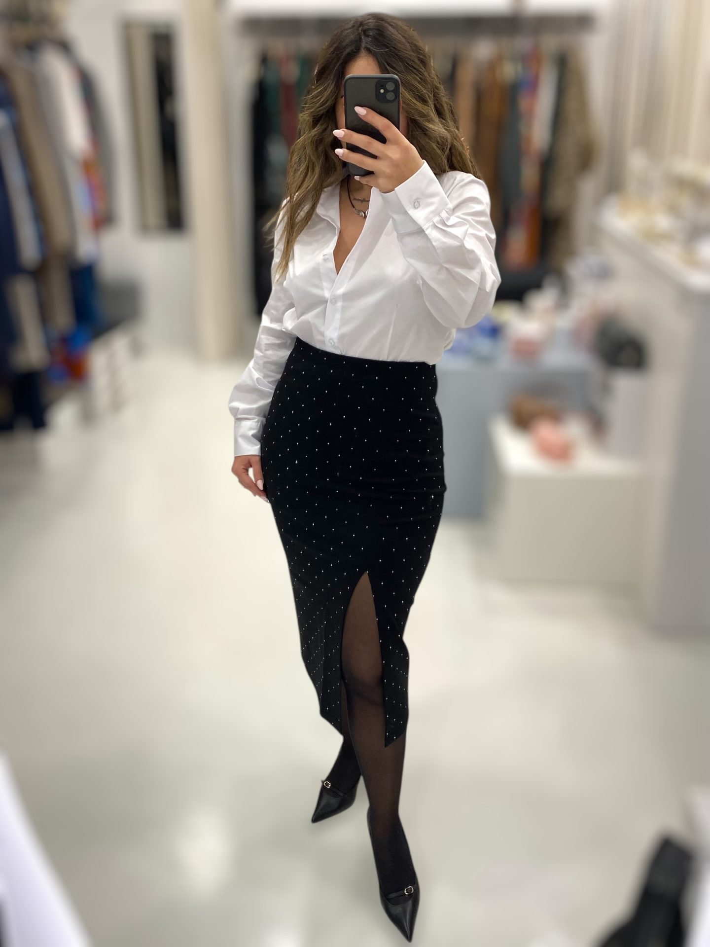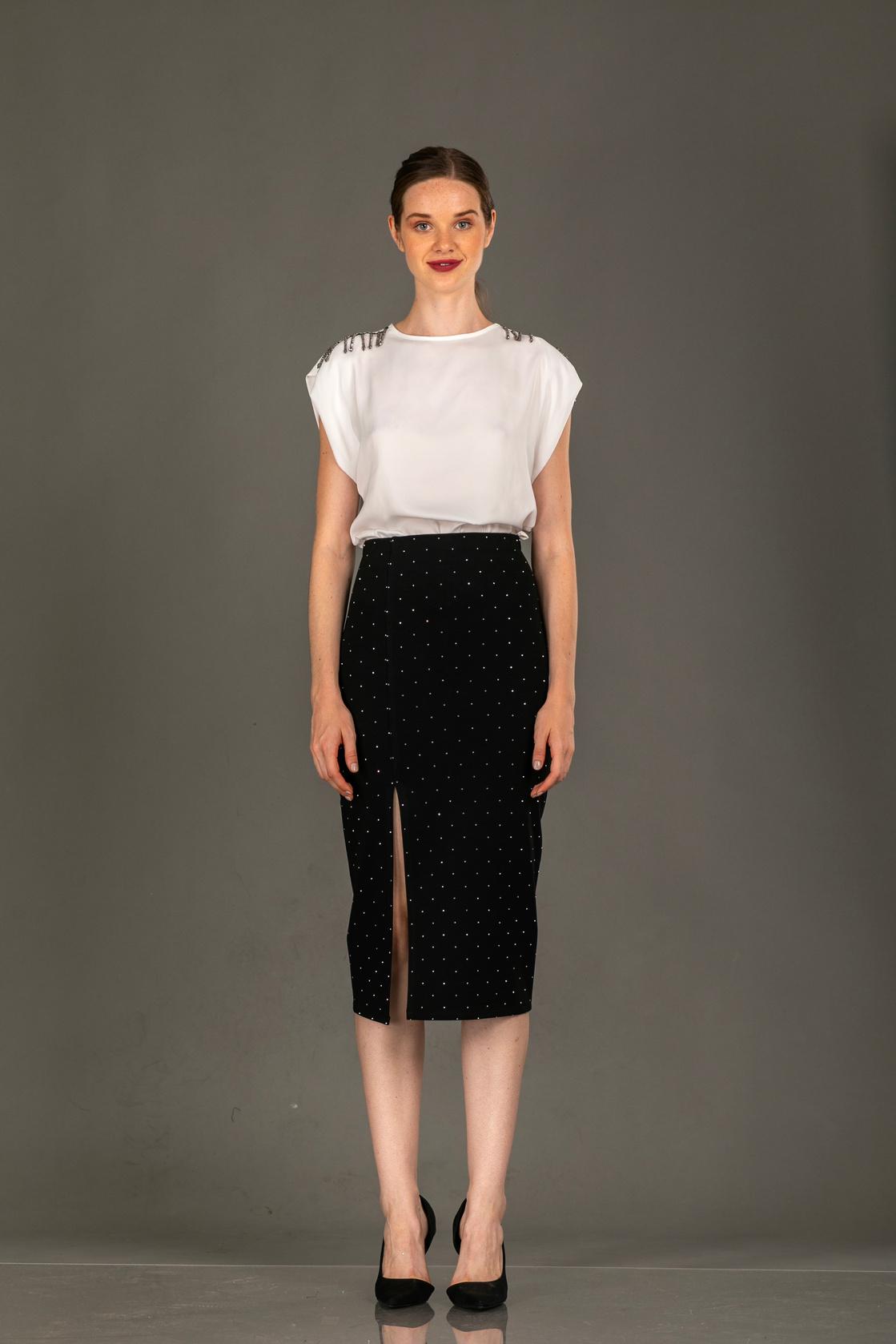 Le Vertige • Pencil Midi Skirt • Black with strass
