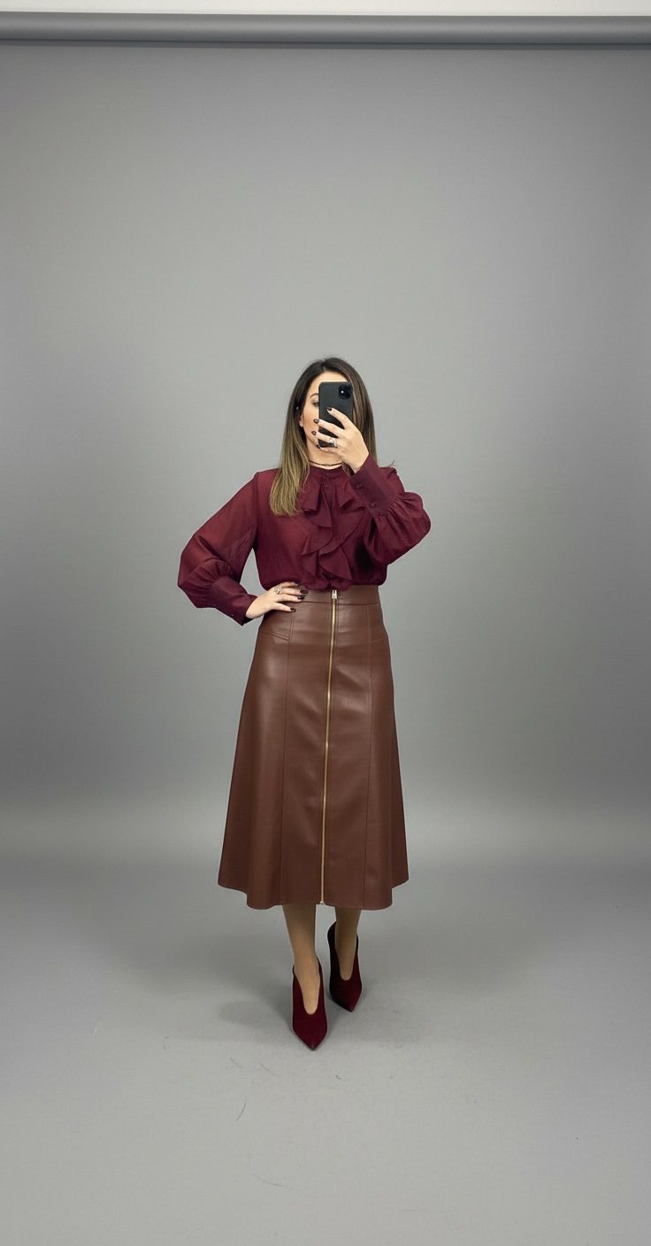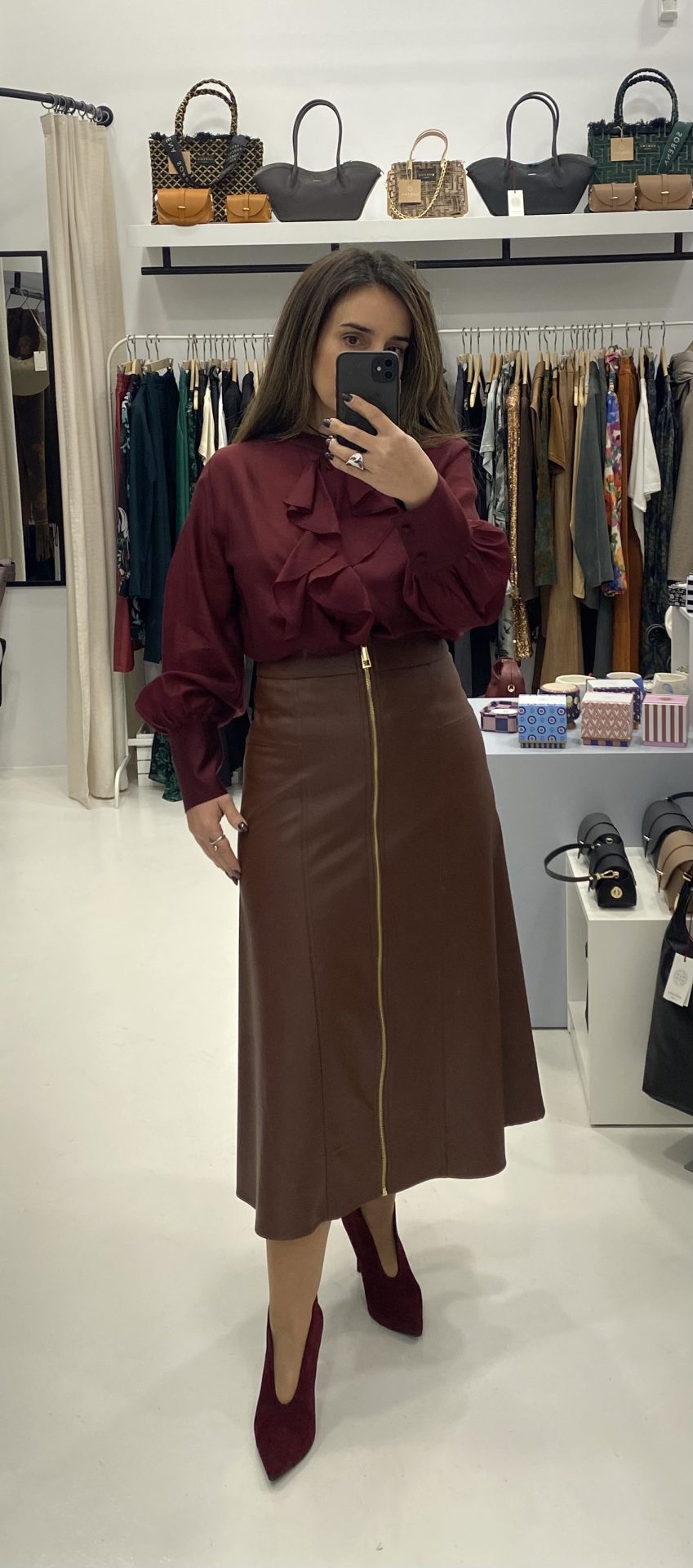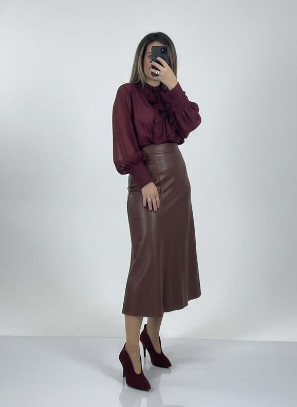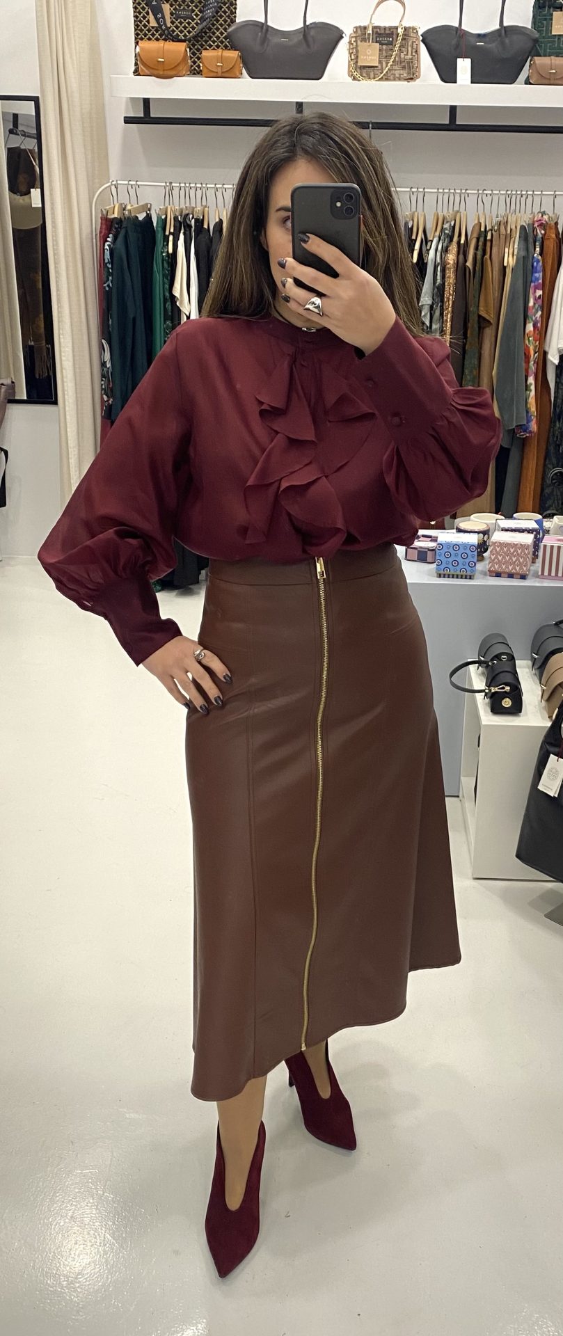 Le Vertige • Vegan Leather highwaisted skirt • Tabac Brown