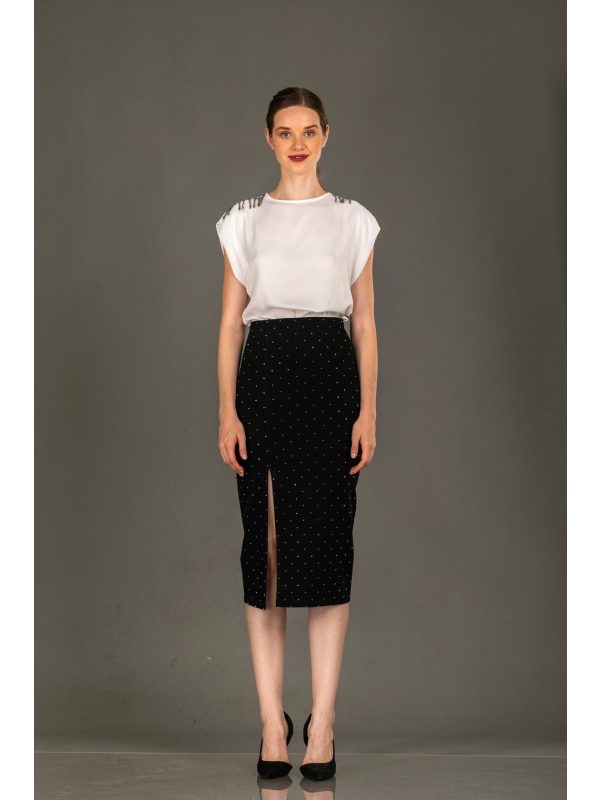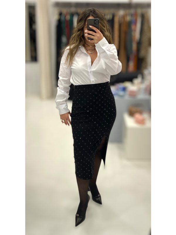 Le Vertige • Pencil Midi Skirt • Black with strass