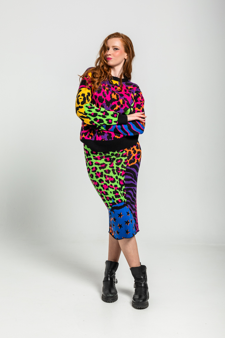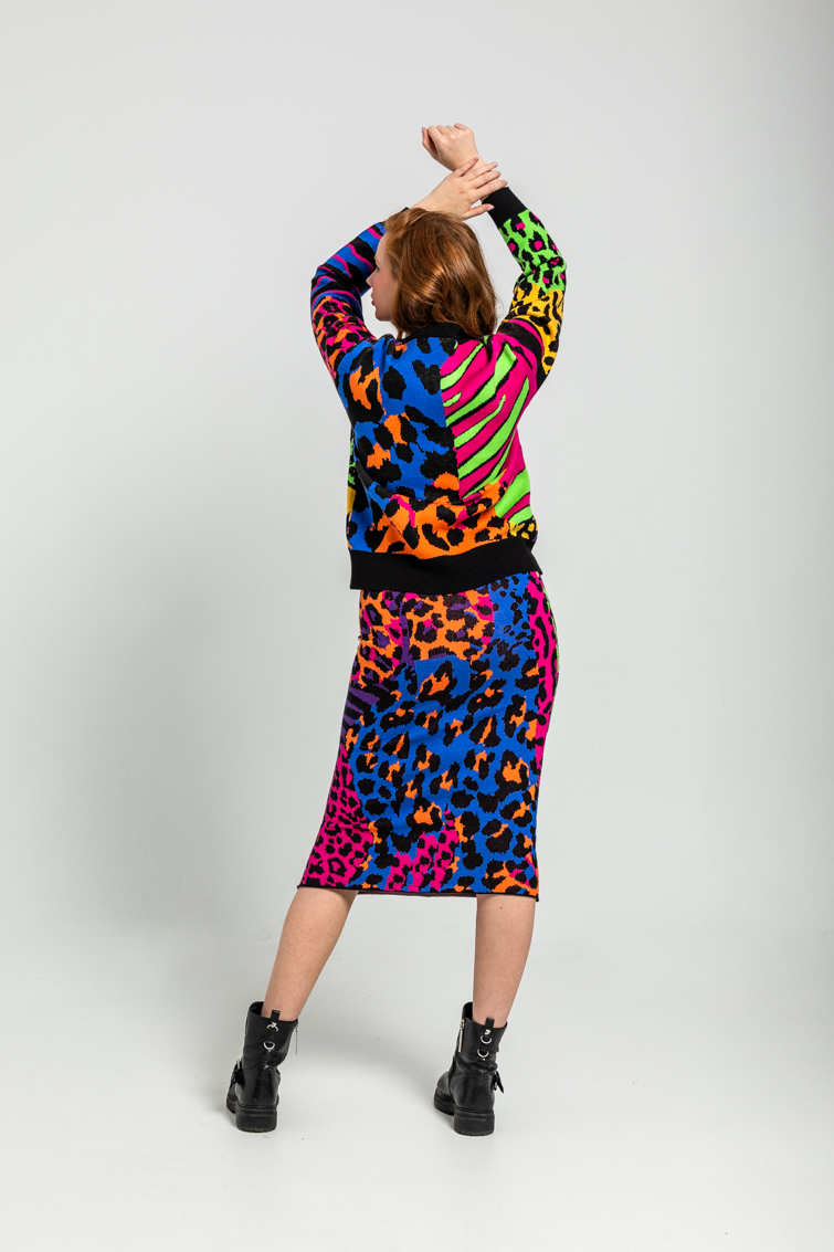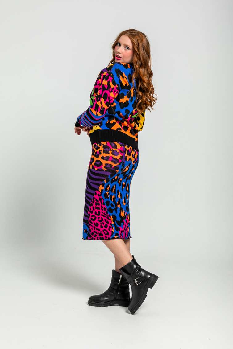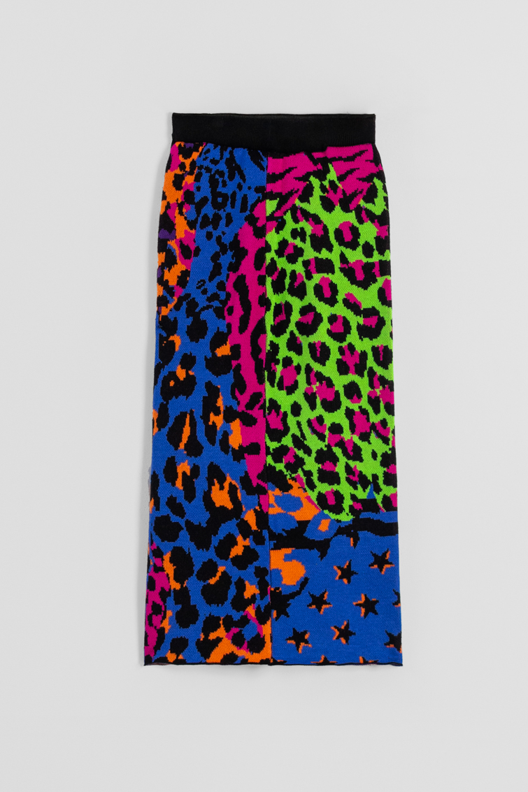 Lolina • Caótica Midi Knitted Skirt • Black multi Leopard