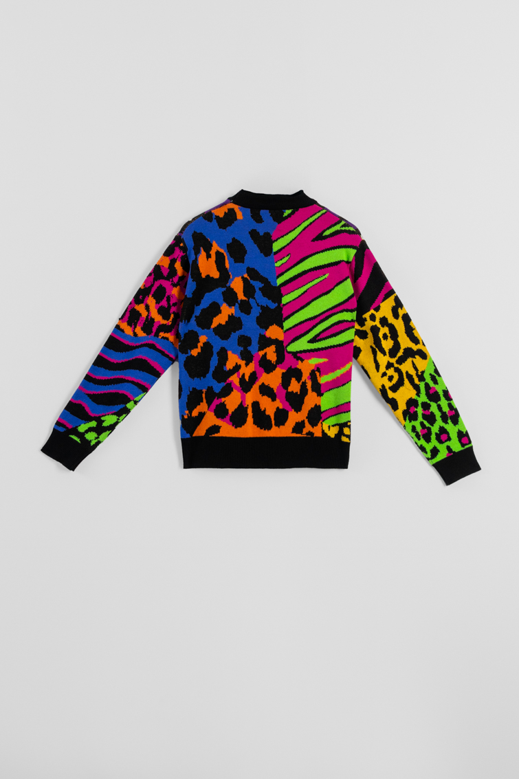 Μαλακό άνετο πουλόβερ, σε πολύ εντυπωσιακό print με κανονική εφαρμογή, από τη συλλογή Caótica. Τολμήστε να το συνδυάσετε με τη midi φούστα του για απόλυτα εντυπωσιακό look!