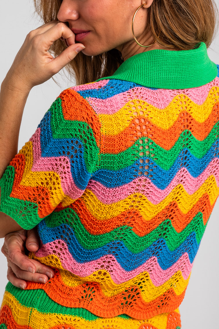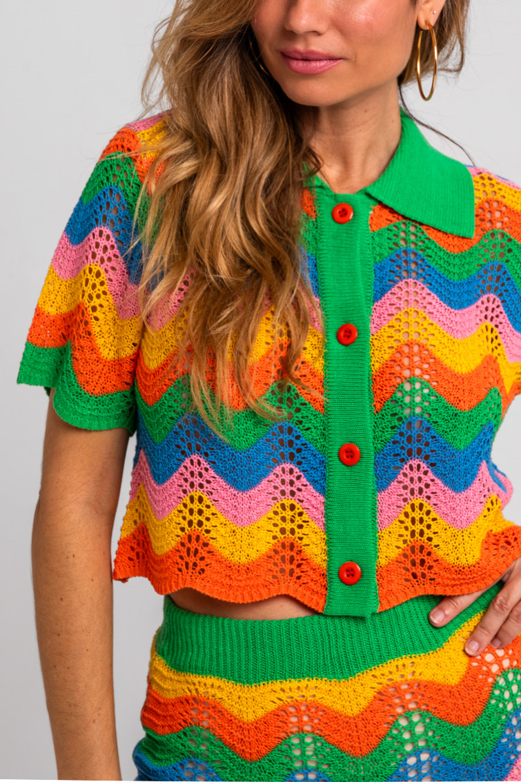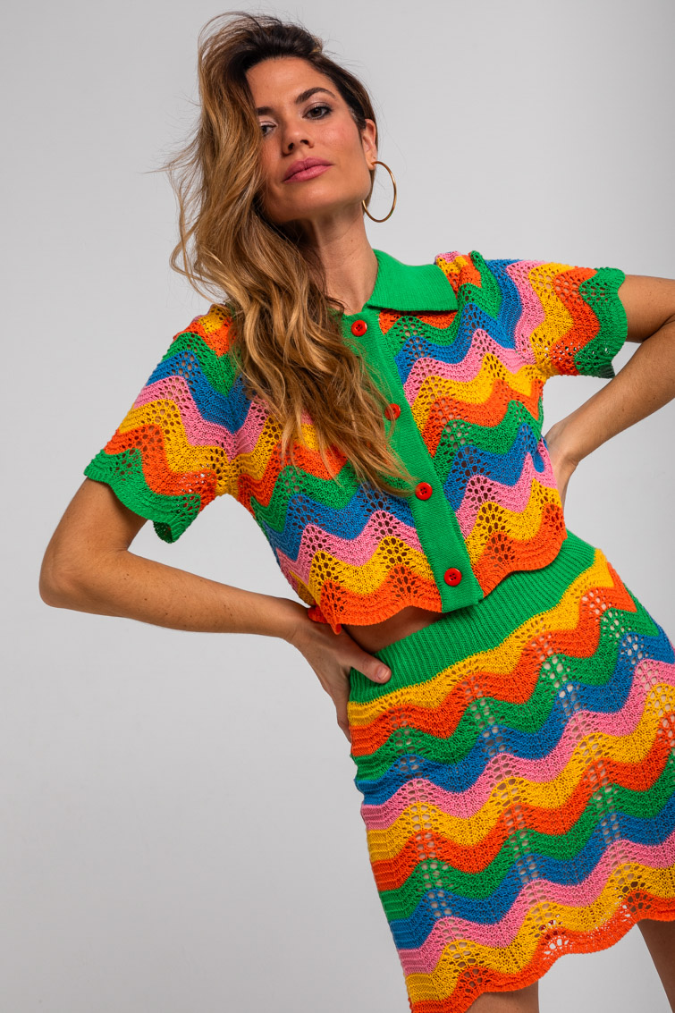 Lolina • Échate flores • Knitted Co-ord Set Waves • Green Yellow Orange