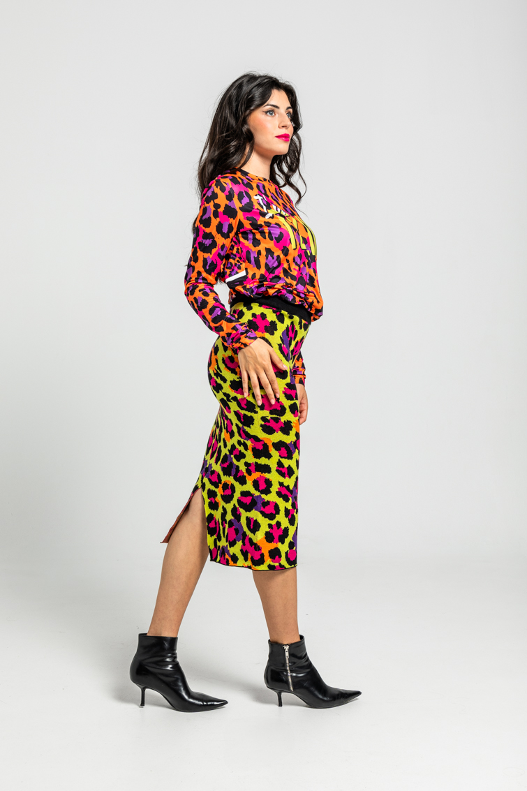Lolina • I’m Felina Midi Skirt • Fuchsia Leopard