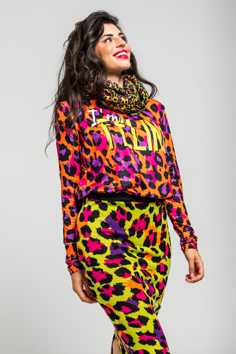 Μαλακή άνετη Midi φούστα , σε πολύ εντυπωσιακό print με κανονική εφαρμογή, από την ανατρεπτική συλλογή I’m Felina. Τολμήστε να τη συνδυάσετε με το πουλόβερ της για απόλυτα εντυπωσιακό look!