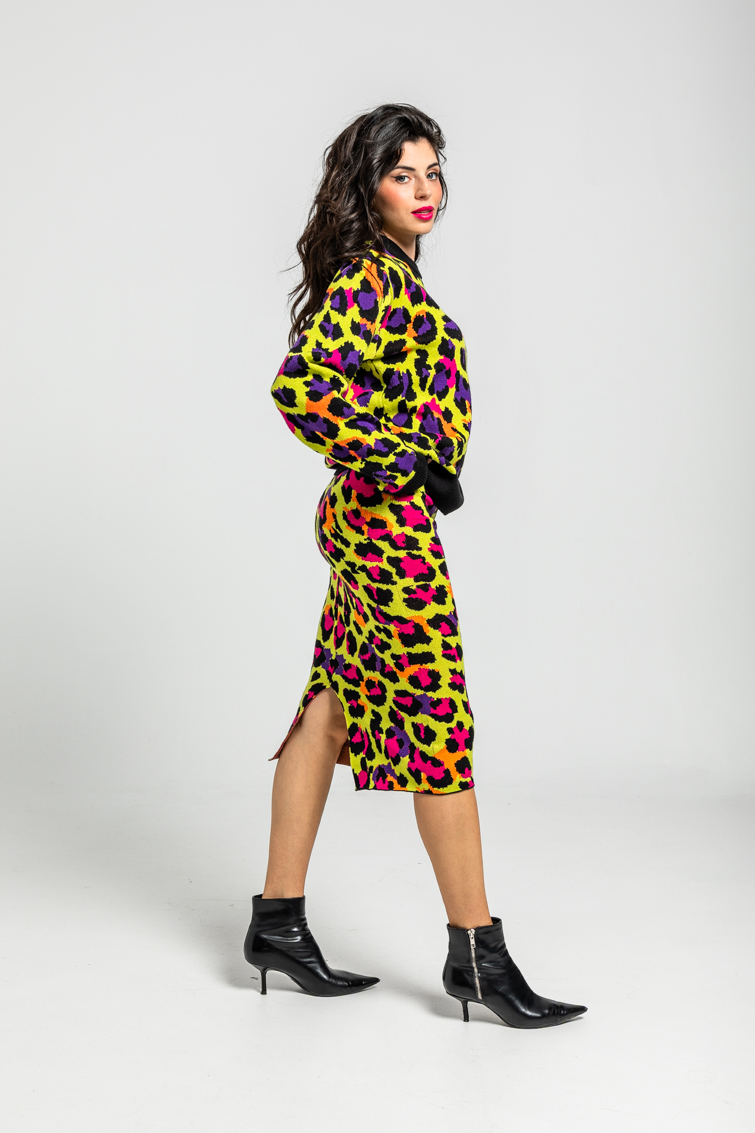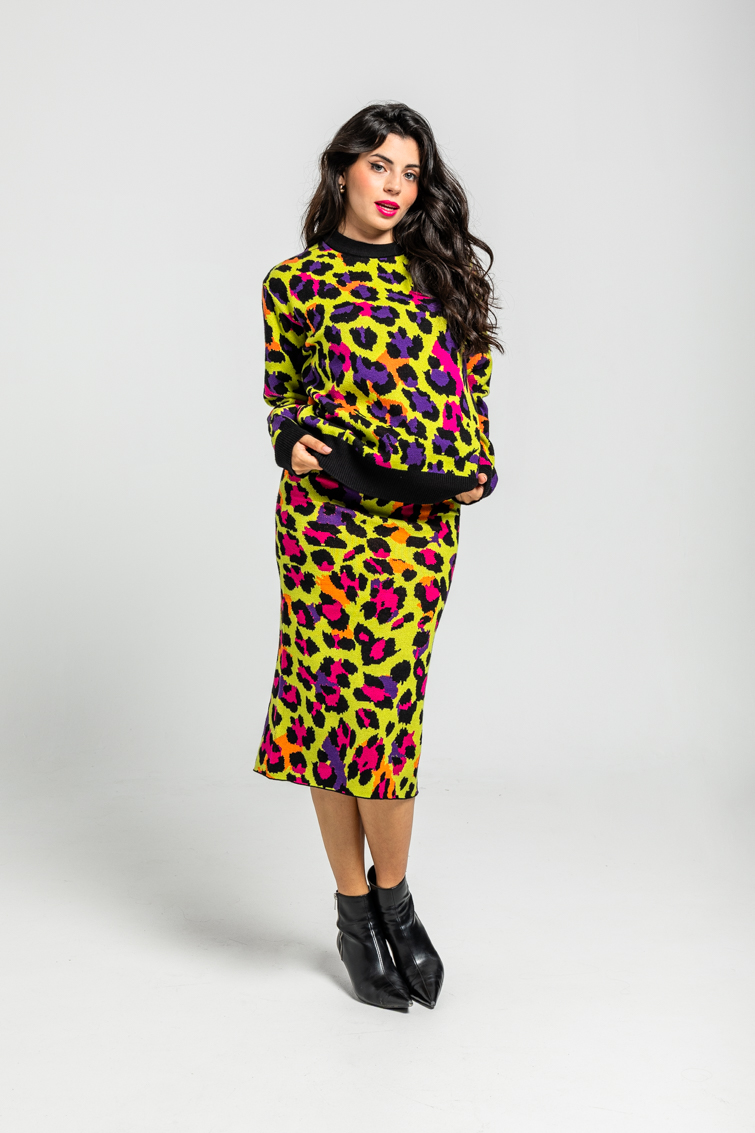 Μαλακό άνετο πουλόβερ, σε πολύ εντυπωσιακό print με κανονική εφαρμογή, από τη συλλογή I’m Felina. Τολμήστε να το συνδυάσετε με τη midi φούστα του για απόλυτα εντυπωσιακό look!