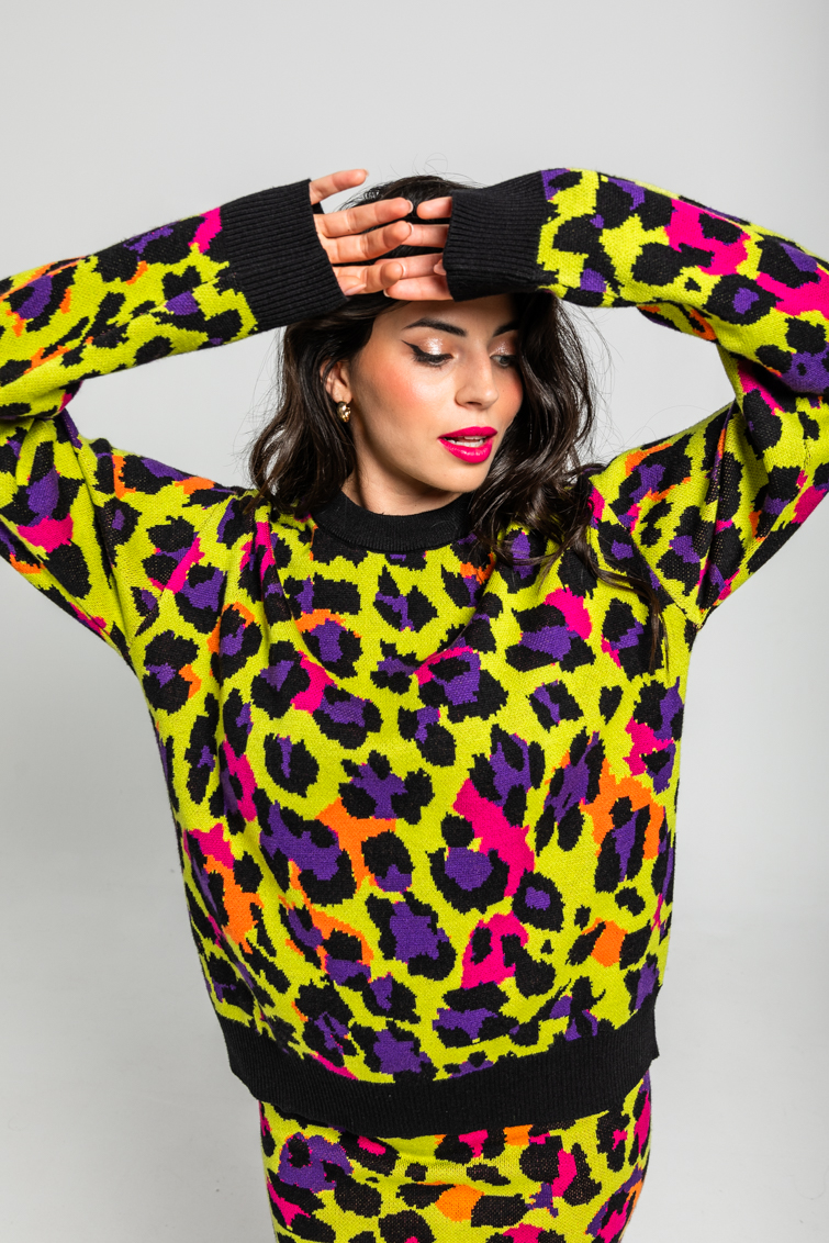 Lolina • I’m Felina Sweater • Green Yellow Leopard