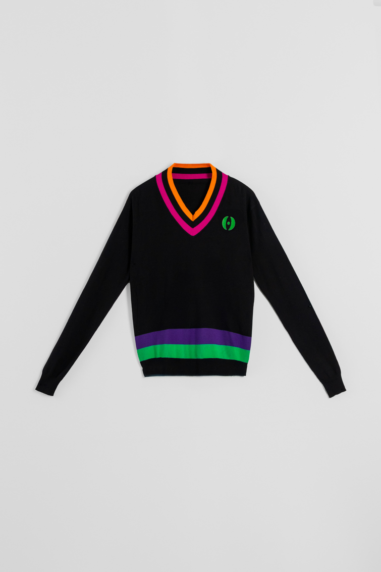 Lolina • Imagine Sweater V Neckline • Black with Stripes