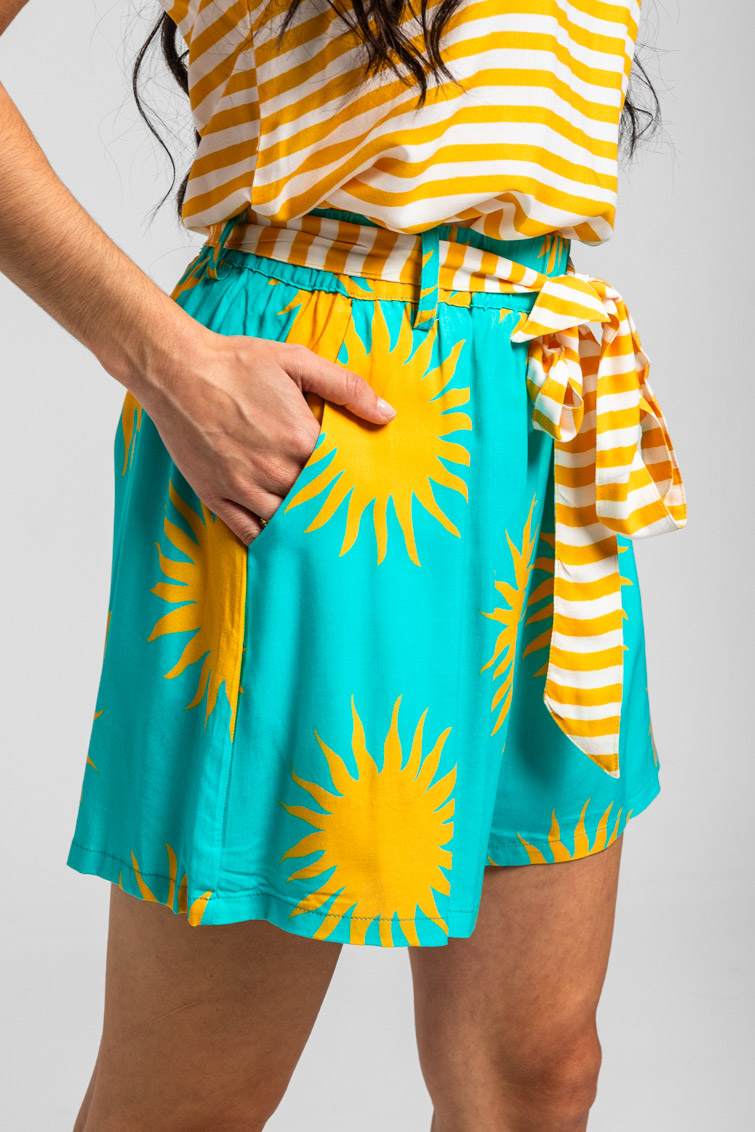Lolina • Oh Sole mio Shorts with bow • Turquoise Yellow