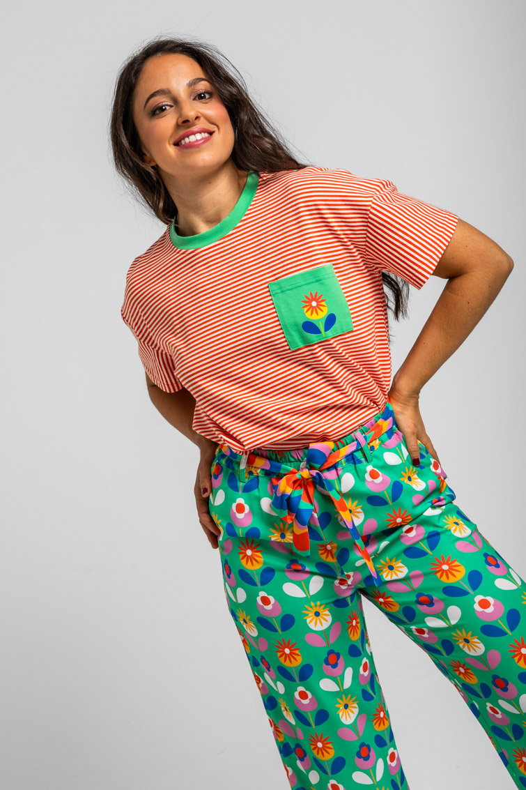 Lolina • Square cut Blooming T-shirt • Orange stripes