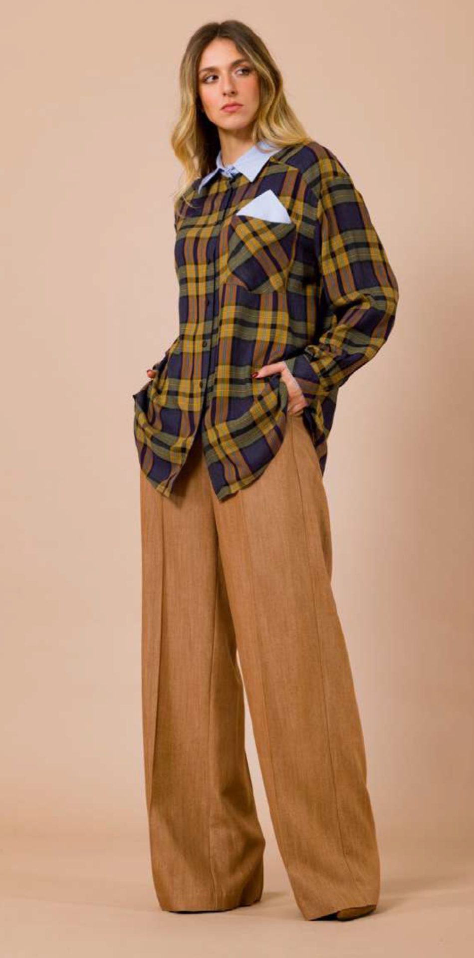 Maryley • Checkered Shirt • Blue Olive Brown