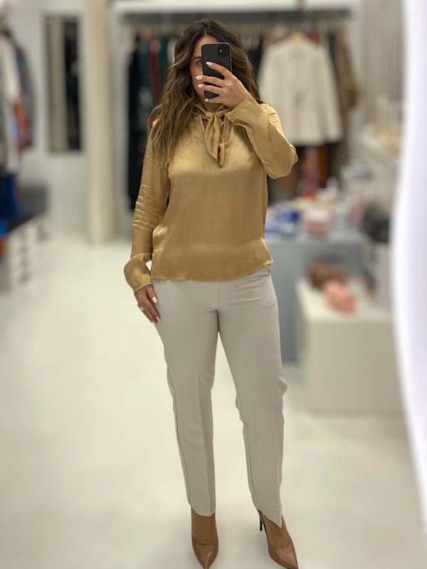 Για ένα εντυπωσιακό office look, συνδυάστε το με ένα ψηλόμεσο υφασμάτινο παντελόνι σε έντονο χρώμα.