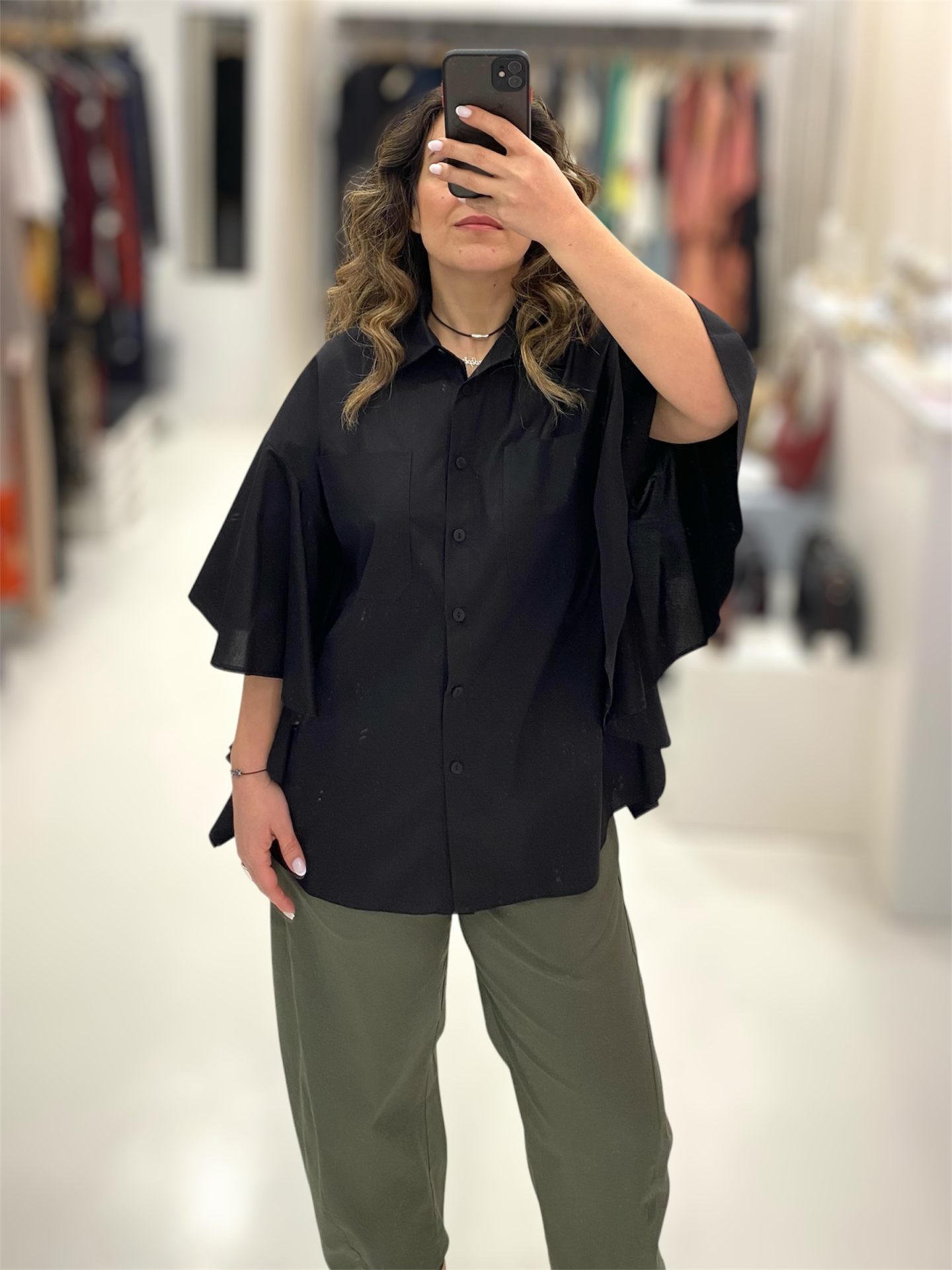 Εντυπωσιακή πουκαμίσα σε άνετη γραμμή με πολύ απαλή και lux υφή. Ιδιαίτερο σχέδιο πεταλούδας στα μανίκια.