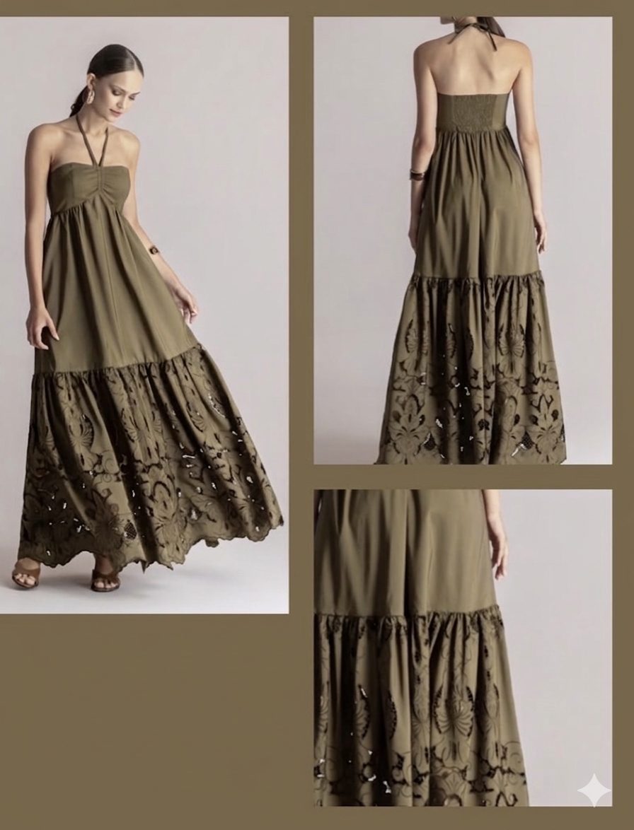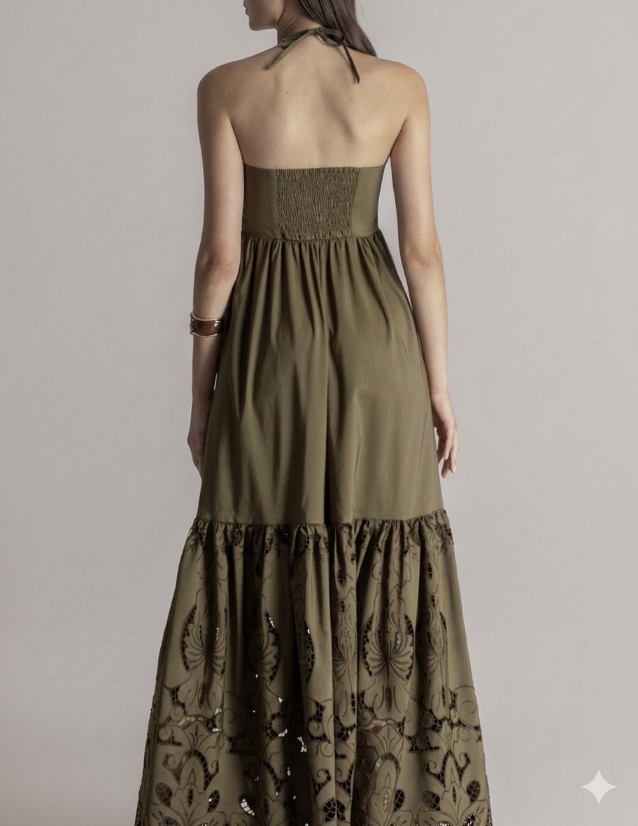 Moutaki • Floral Cutwork Embroidery Dress • Khaki