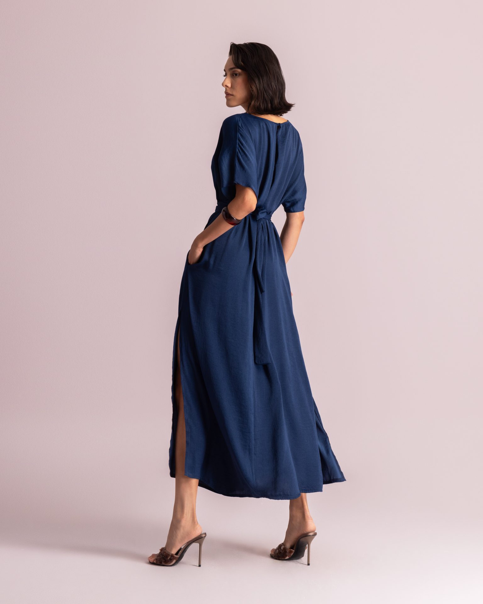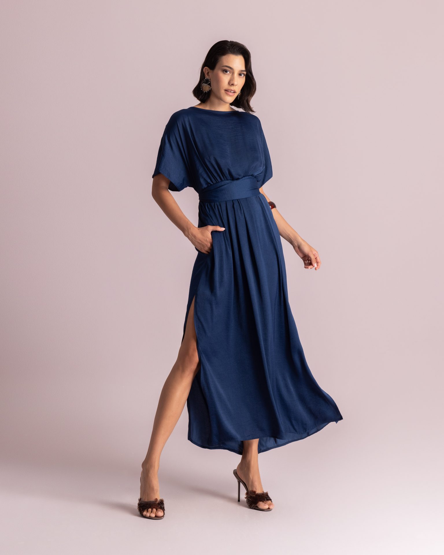 Κομψό και αερινο μάξι φόρεμα με ενσωματωμένη ζώνη και τσέπες από πολύ μαλακό ύφασμα.