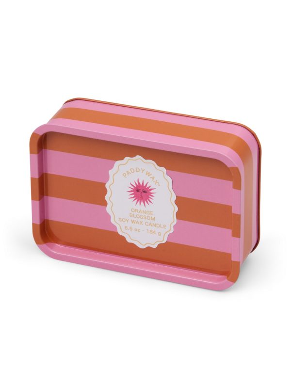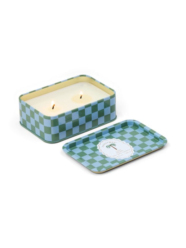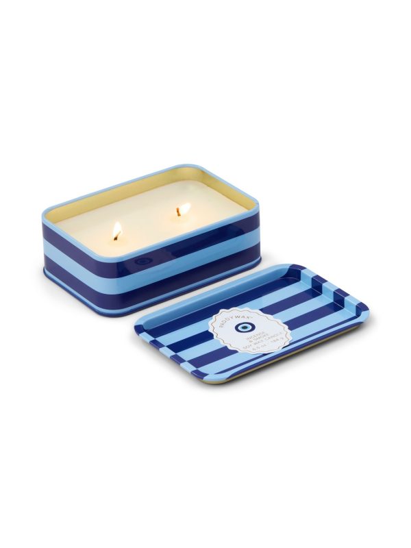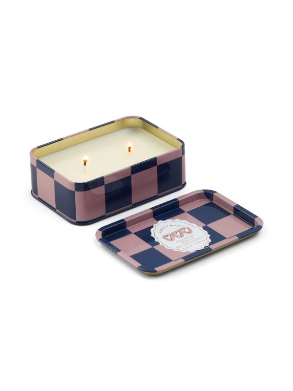 Cherie tin candle effortlessly brings a touch of charm to any space. This elegant, patterned tin features has two wicks, a hinged lid, and a removable label so that once the wax has burned, it is perfectly suited to hold jewelry or trinkets! Pairs perfectly with the matching Cherie ceramic candle. 100% Soy wax candle in a tin with a faux pull-tab for added character inspired by sardine tins, these tin candles with hand illustrated artwork offer a cozy glow with its two wicks, and a comforting scent.