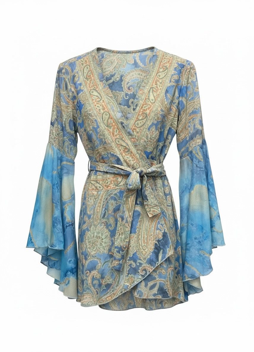 Pahiesa Formentera • Silk Collection • Asymmetrical Long Wrap Dress • Gold Blue Yellow