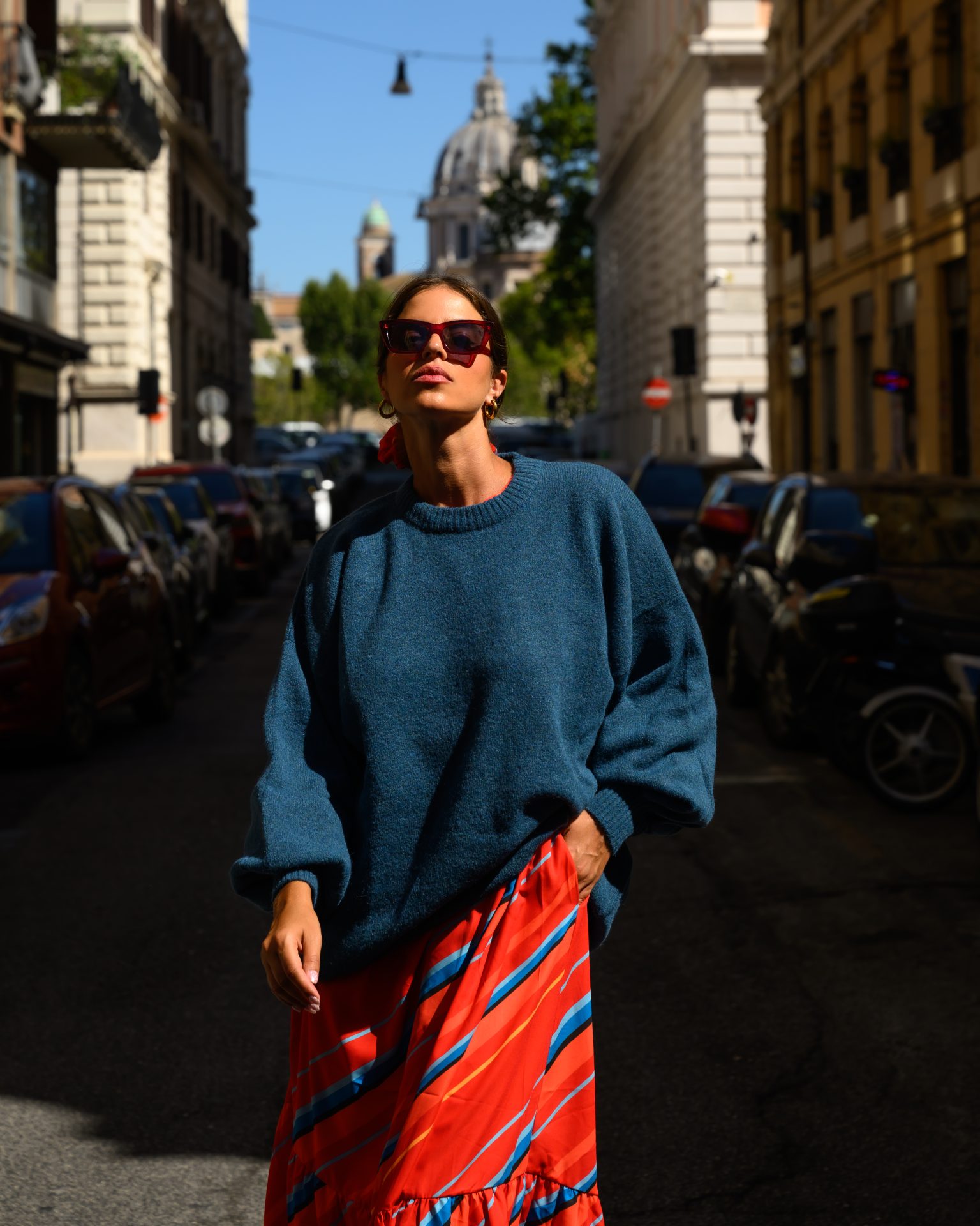 Πουλόβερ oversized με εξαιρετική ποιότητα νήματος και φαρδύ-balloon μανίκι με μανσέτα. Χαλαρή λαιμόκοψη και άνετη εφαρμογή.