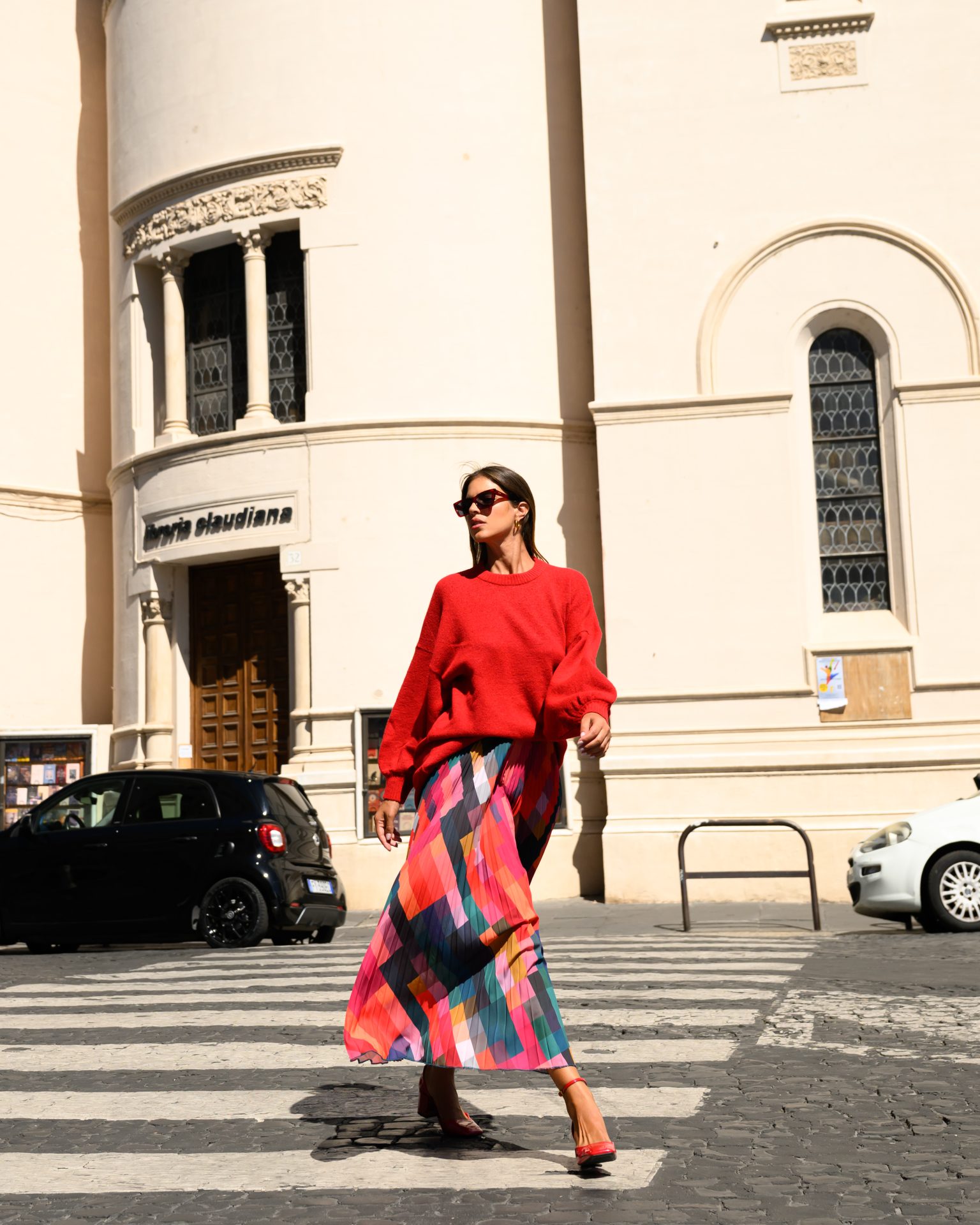 Πουλόβερ oversized με εξαιρετική ποιότητα νήματος και φαρδύ-balloon μανίκι με μανσέτα. Χαλαρή λαιμόκοψη και άνετη εφαρμογή.