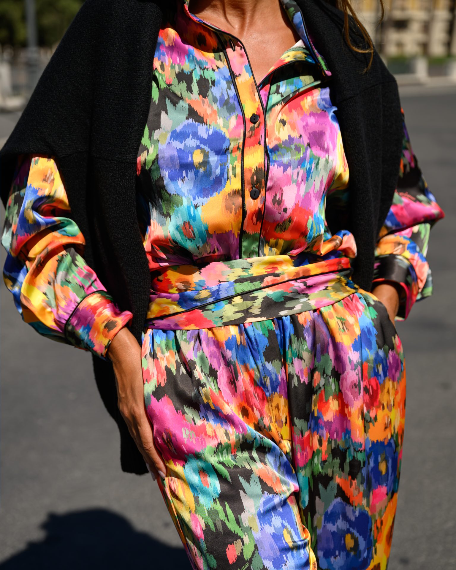 Πουκάμισο σε δύο μεγέθη (ikat flowers) με ζώνη.