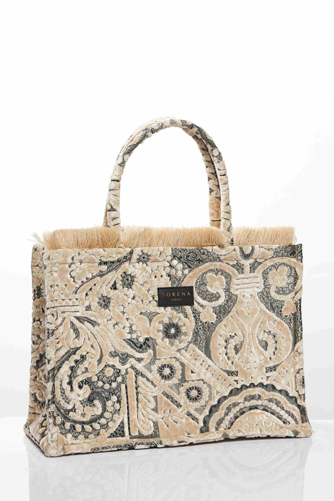 Η τσάντα έχει ένα μεγάλο χώρο και μια μεγάλη τσέπη με φερμουάρ. Μπορείτε να τη φορέσετε ως τσάντα χειρός ή να χρησιμοποιήσετε το παρεχόμενο λουράκι για να τη φορέσετε ως τσάντα ώμου. Πολυτελής βελούδινη εξωτερική και εσωτερική επένδυση και κλείσιμο με φερμουάρ.