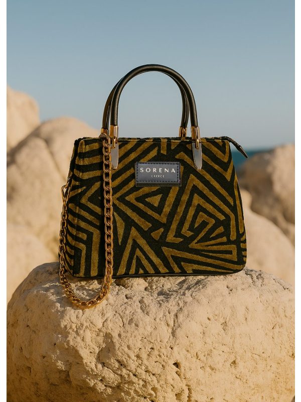 Η τσάντα έχει αρκετό χώρο για τα βασικά σας είδη, ασφαλές κλείσιμο με φερμουάρ και συνοδεύεται από κομψή χρυσή αλυσίδα. Μπορείτε να τη φορέσετε ως τσάντα χειρός ή να χρησιμοποιήσετε το παρεχόμενο λουράκι για να τη φορέσετε ως τσάντα ώμου. Πολυτελής βελούδινη εξωτερική και εσωτερική επένδυση.