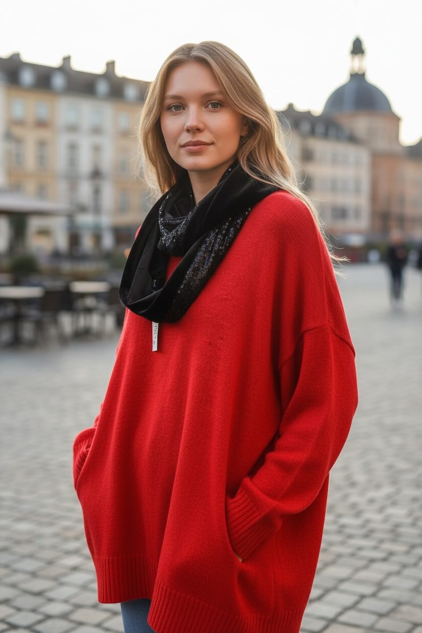 Χειροποίητο infinity φουλάρι από ύφασμα παγιέτας σε μαύρο χρώμα. Η δεύτερη πλευρά από πολυτελές μαύρο βελούδο χαρίζει cozy υφή, ενώ οι μαύρες παγιέτες δίνουν διακριτική λάμψη και sophisticated χαρακτήρα.